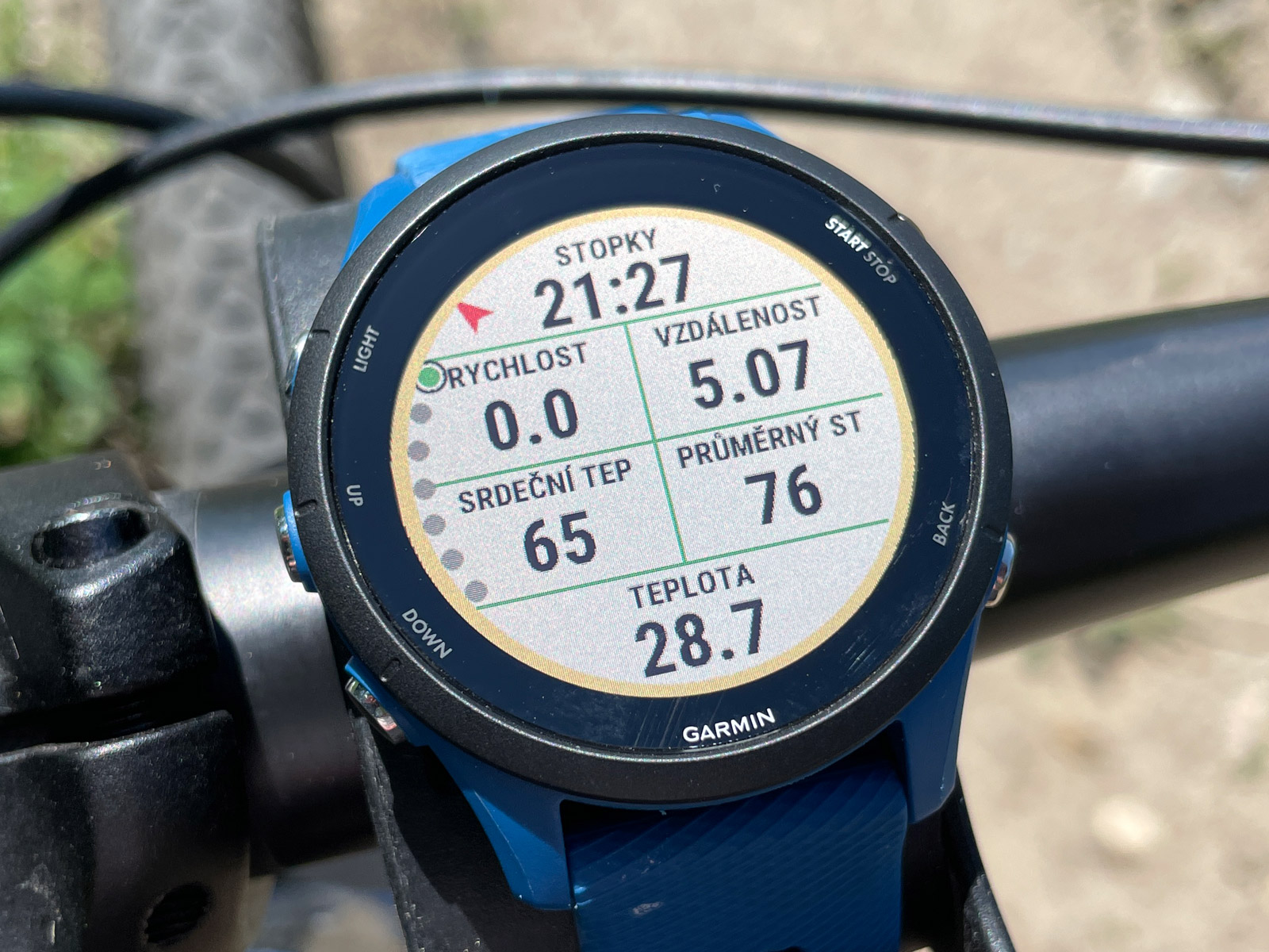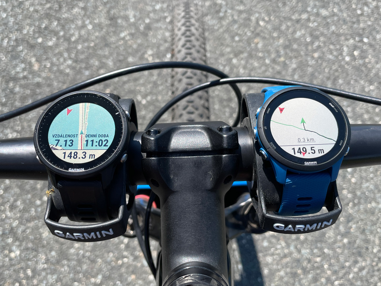 Po delší době se mi dostaly do rukou hodinky, které nemají mapu - Forerunner 255 - a tak jsem si s nimi navigaci bez mapy trochu oživil. A nutno říct, že to nebylo úplně špatné. Vedle jsem na řídítkách měl i mapové hodinky FR 955, abych mohl srovnávat. S mapou je to samozřejmě výrazně jednodušší, vidíte dopředu, kam budete zahýbat, kudy vede cesta, turistické značení apod.