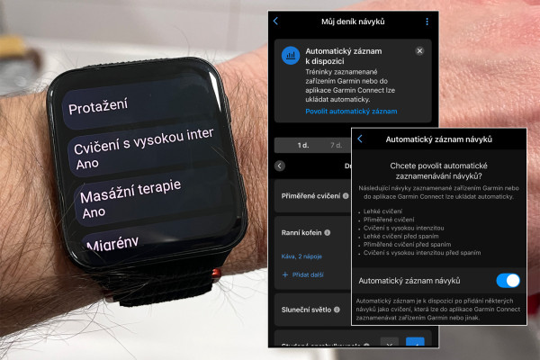 Na počátku to vypadalo jako velmi zajímavá funkce. Jenže hlídat si svoje návyky každý den, to docela obtěžuje. Naštěstí Garmin přidal možnost automatického vyplňování některých položek