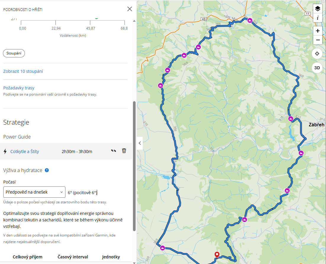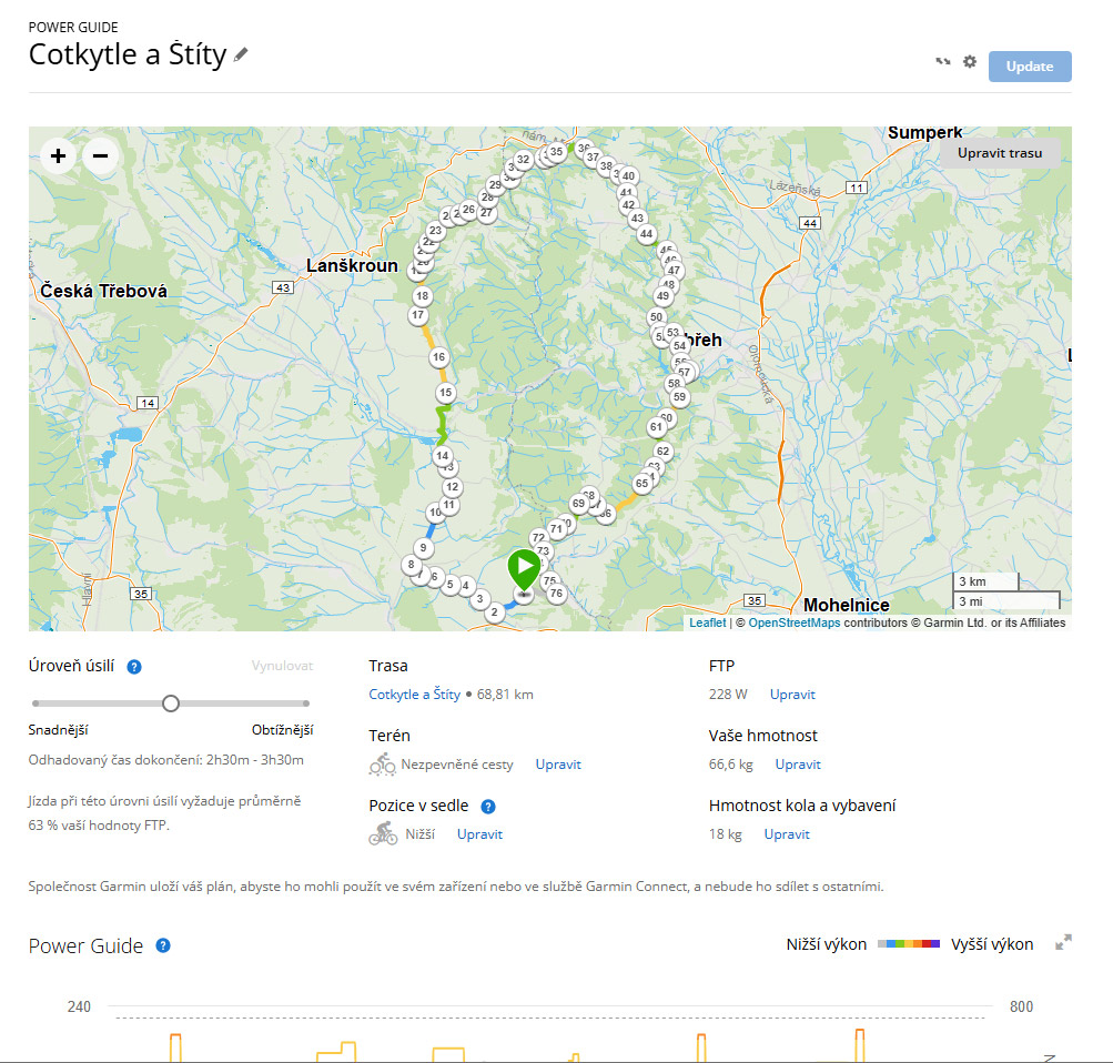 To může pomoct třeba v závodu, ale i při tréninku. Já tuto funkci dlouhodobě ignoroval, protože nejezdím na výkon, ale pro radost, ale s tím, jak se postupně prokousávám tím, co všechno Garmin umí, tak došlo i na PowerGuide - tedy průvodce výkonem v naplánované trase.