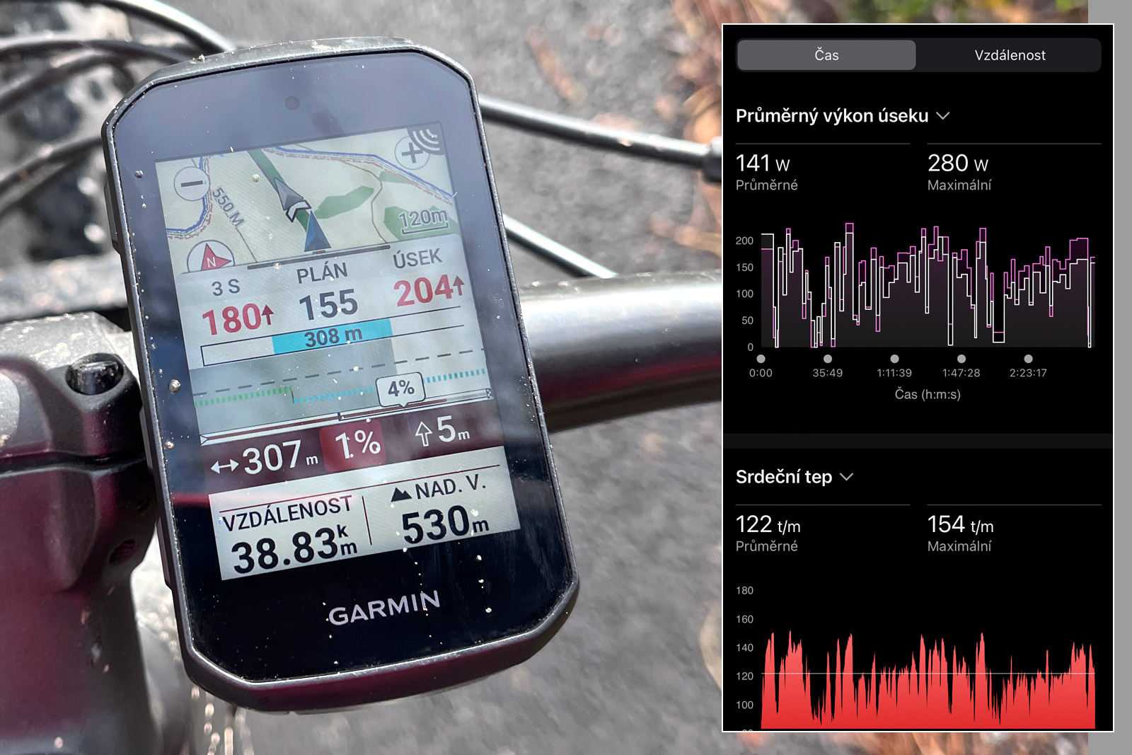 Já testoval Power Guide na Edge 850 a 1050, ale umí jej i hodinky. Tam to ale není tak přehledné jako právě na Edge, kde se na obrazovce Power Guide ukazuje kromě dat výkonu také mapa s trasou, takže nemusíte přepínat na navigaci. Současně na vás vyskakují navigační instrukce a na modelech 850 a 1050 slyšíte také navigační instrukce přímo z reproduktoru.