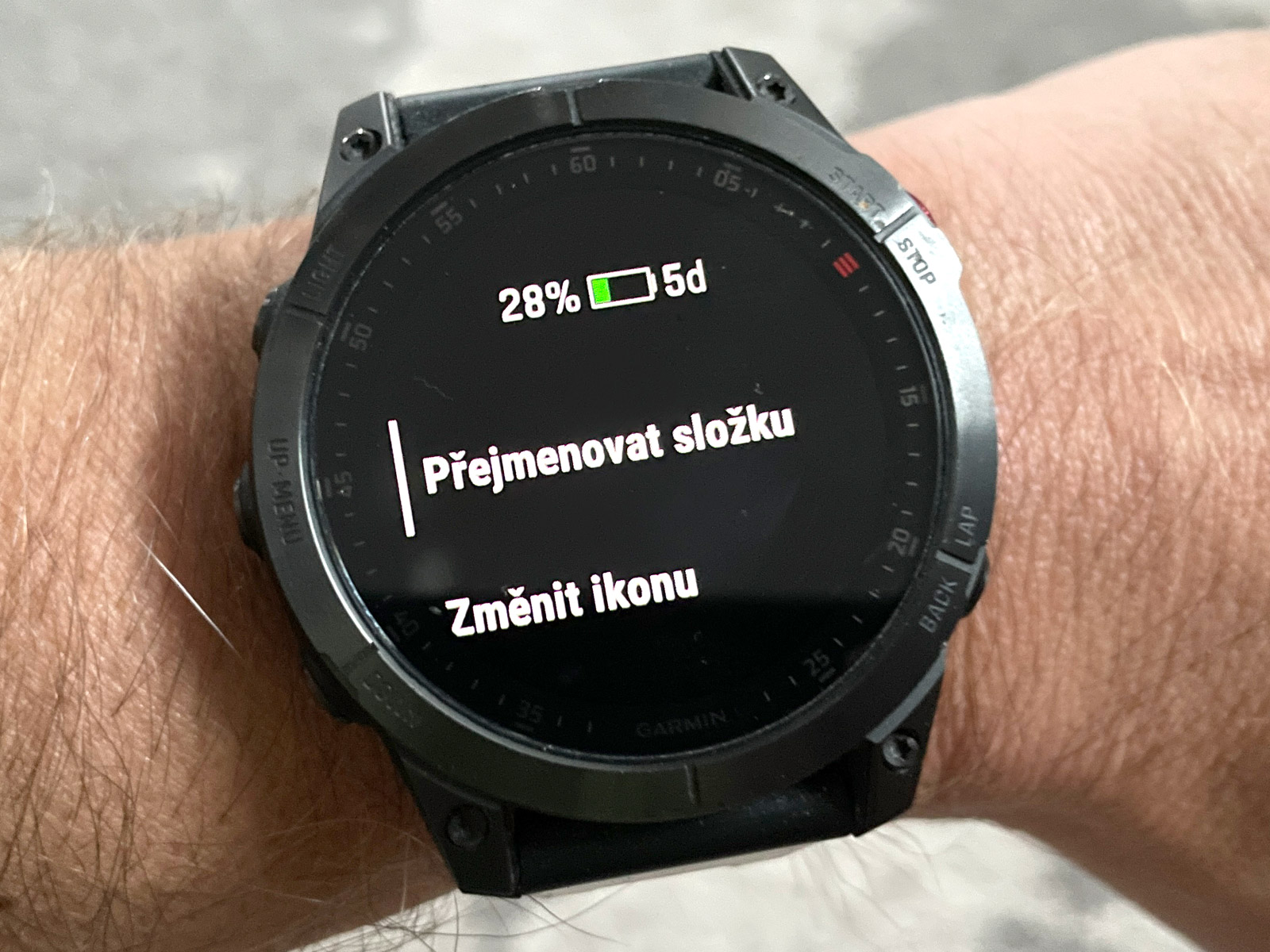 Pro mě naprosto zásadní funkcí nedávno uvedeného firmwaru pro Fénix 7 a Epix je správa složek, která perfektně nahradí zmizelé doplňky Můj den a Statistiky zdraví. Do složek si můžete dát opravdu cokoliv. Každá složka má svoje jméno, které můžete vybrat z několika návrhů, nebo si složku pojmenovat sami. Každá složka pak může mít vlastní ikonu, je jich tu celkem deset a vybrat se z nich celkem dá.