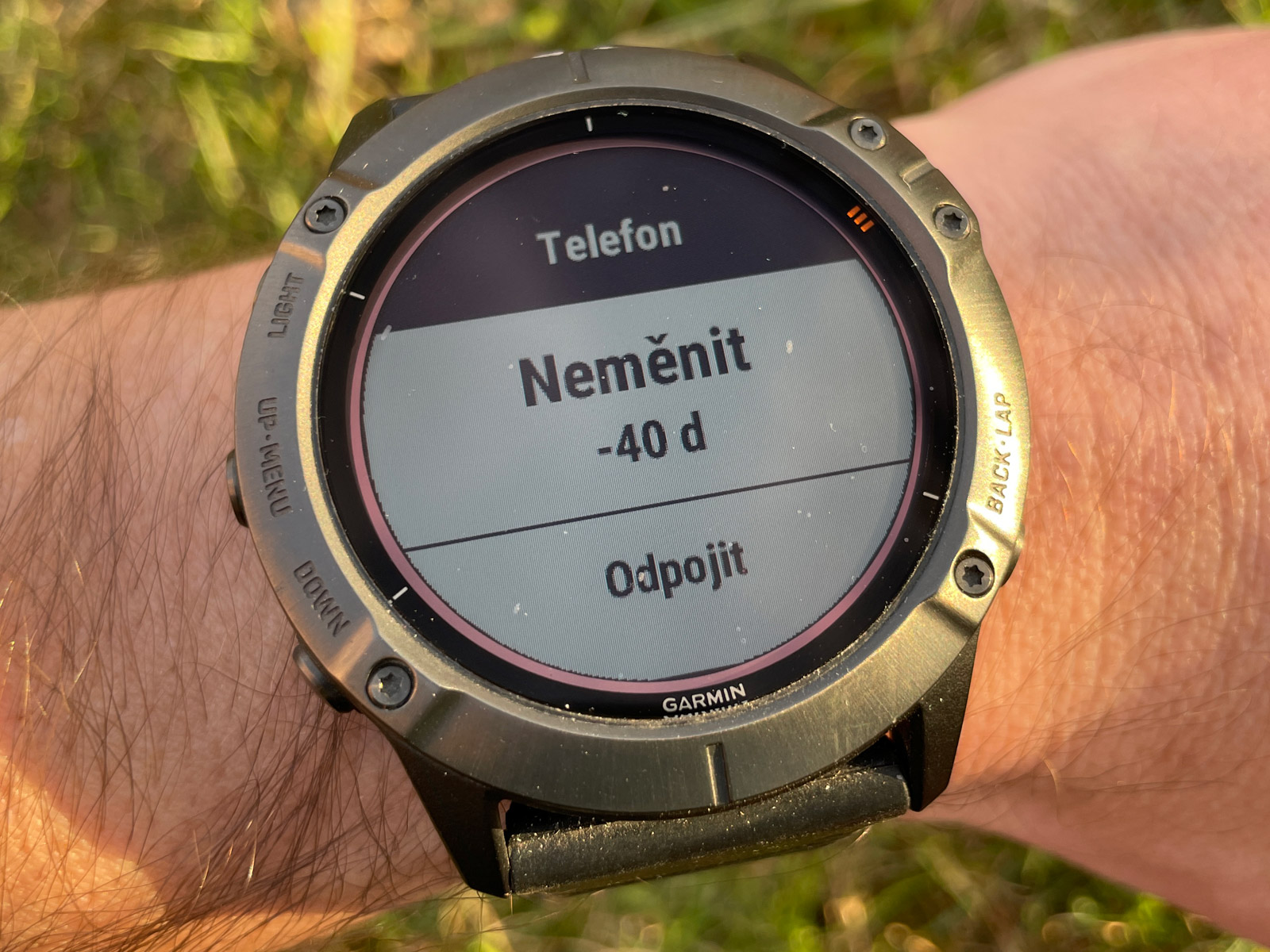 Nejprve se podívejme, jak se dá šetřit energie v režimu hodinek, tedy po většinu dne. Hodinky Fénix 6 umí ukazovat stav baterie nejen procentem, ale také odhadem počtu dnů, kolik vydrží při aktuálním nastavení (viz výše). Tento odhad je přímo ovlivňován zapnutím či vypnutím zmíněních funkcí. Když například u modelu F6X vypnete snímač tepu, vzroste výdrž z 21 dnů na 27. Když k tomu ještě vypnete připojení k mobilu, dostaváte se na 41 dnů. A to už je hodně slušné. Můžete také vypnout podsvícení displeje apod.