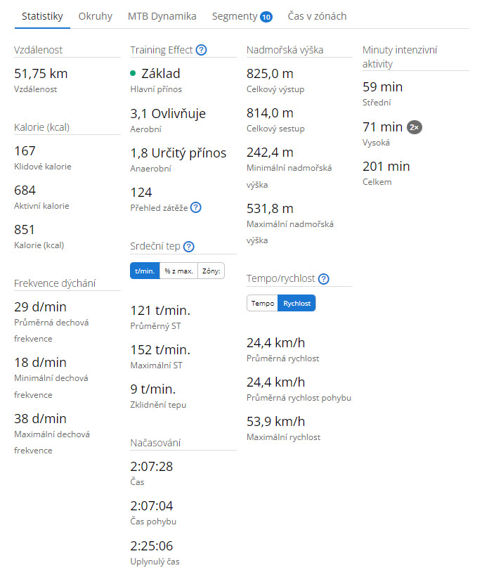 Rozdílem je přehled aktivity po jejím ukončení. FR 255 ukáže krásné přehledné grafy tempa, rychlosti, nadmořské výšky apod., Instincty jen textová data s dobou regenerace a přehledem tréninkového efektu. Opět, absence barev a hrubý displej je značným omezením.