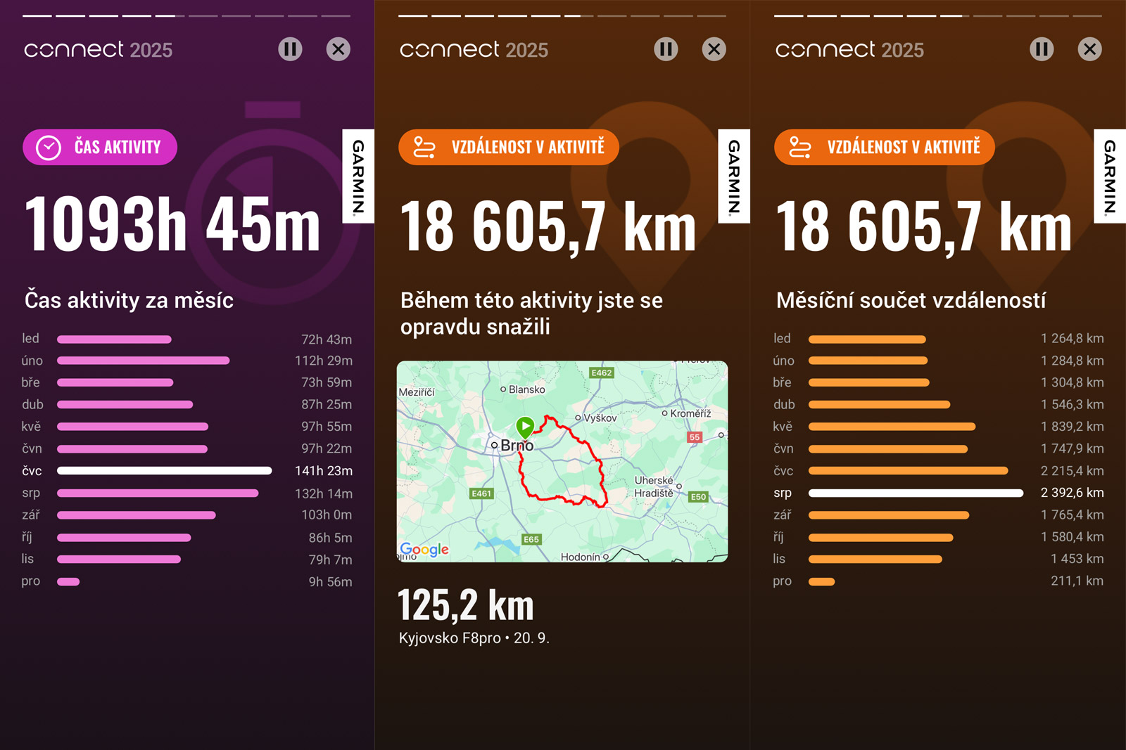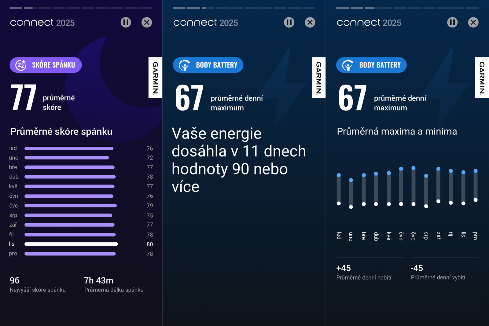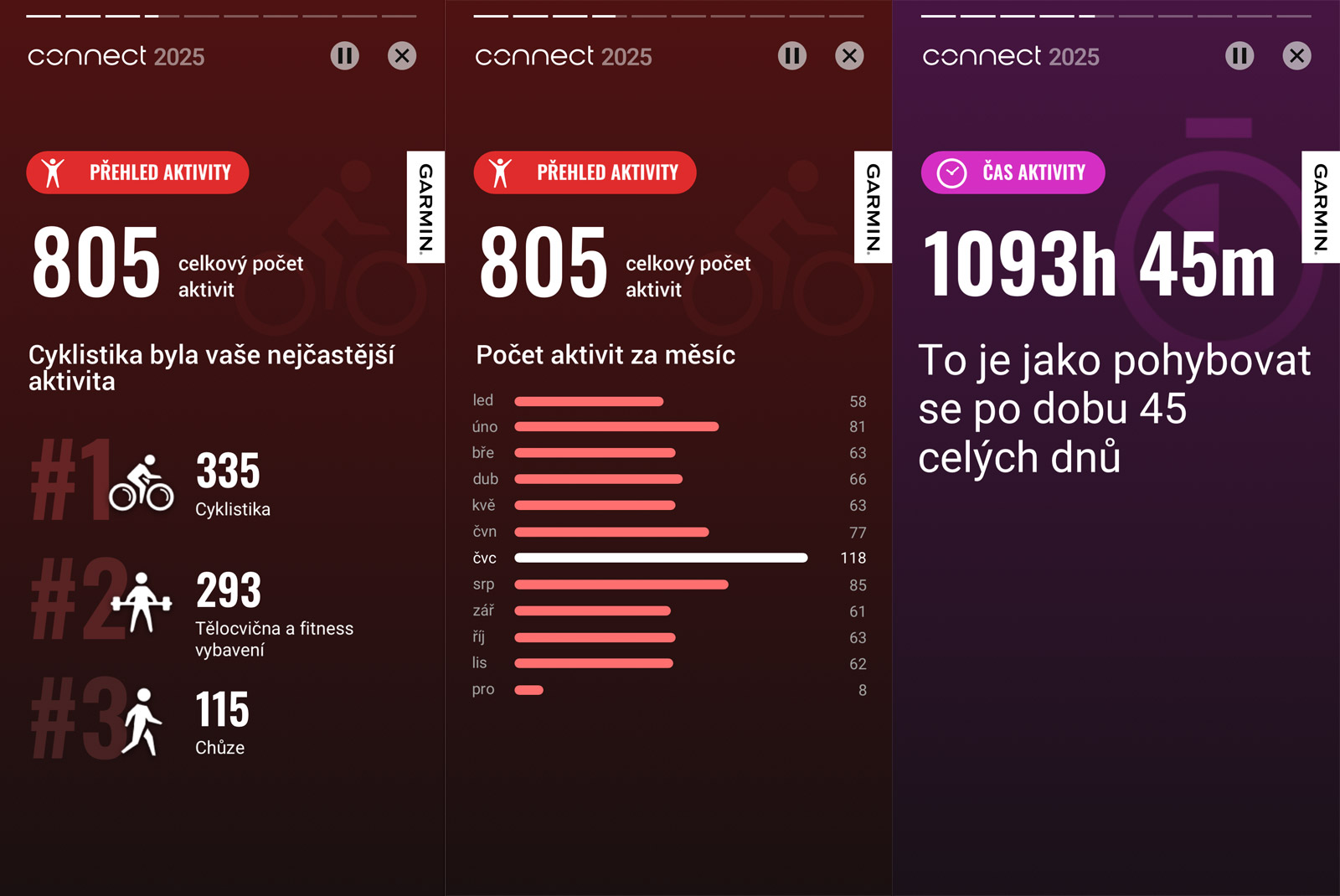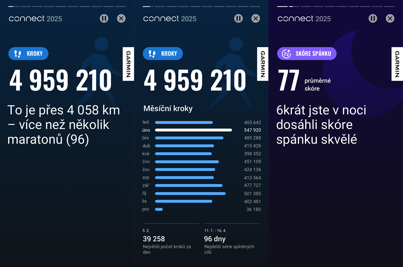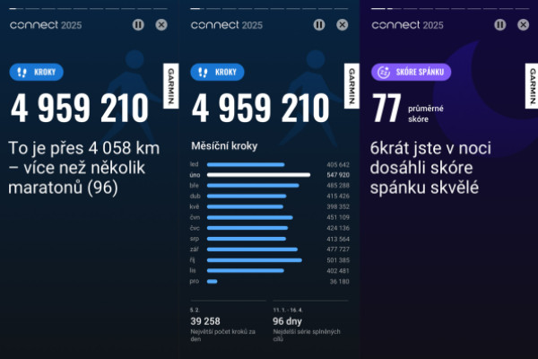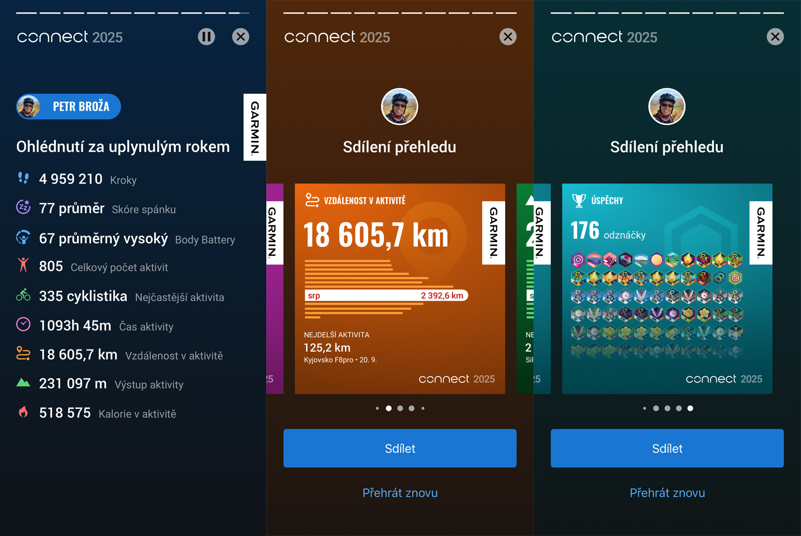 Garmin připravil zcela novou, mnohem rozsáhlejší roční rekapitulaci s názvem Ohlédnutí za uplynulým rokem (Rundown), která vám ukáže přehled vašich celoročních aktivit. Tento souhrn spojuje široké spektrum dat a postřehů, které shrnují váš pokrok během roku, a to v přehledném, vizuálně atraktivním a snadno sdílitelném formátu (kdo dnes nesdílí, jako by nebyl).