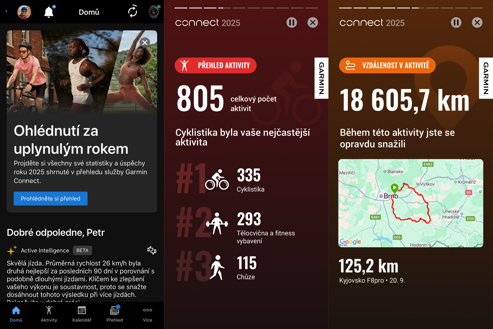 Celkově je tento přehled navržen tak, aby vyprávěl příběh vašeho roku prostřednictvím úspěchů, rutiny, vrcholů i malých vítězství, která dohromady tvoří celek. Podobné roční přehledy mají jiné ekosystémy, např. Strava, Garmin k tomu přistupuje hlouběji a více graficky. Nabízí vizuální, rozsáhlou a kontextem nabitou formu shrnutí vašeho roku. A nevypadá to úplně špatně.