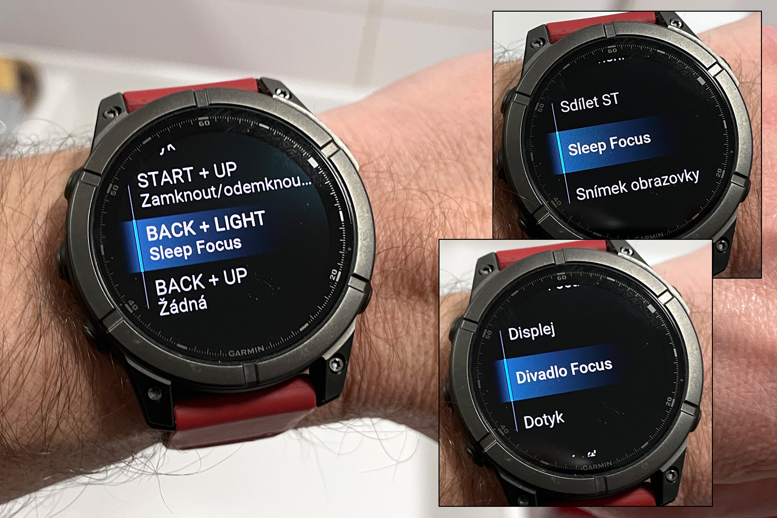 Doteď jsem měl kompromis 20 %, což je málo přes den, ale příliš večer. A stejnou zkratkou pak zase režim deaktivuju, když je potřeba. Ale není - protože ráno se z režimu Spánek hodinky automatiky přepnou do standardního režimu. Ještě je škoda, že chování režimů zaměření nelze nastavit tak, aby se aktivovaly po setmění, ale to už bychom asi po Garminu chtěli mnoho. Umí jen program, jenže západ slunce je každý den v jiný čas.