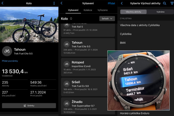 Už dlouho můžete v Connectu sledovat vybavení, jako jsou běžecké boty a kola (bajky). K jednotlivým položkám se automaticky přiřazuje naběhaný/ujetý počet kilometrů nebo čas strávený aktivitou, což pomáhá například běžcům sledovat opotřebení bot nebo cyklistům využití kola či jednotlivých komponent.