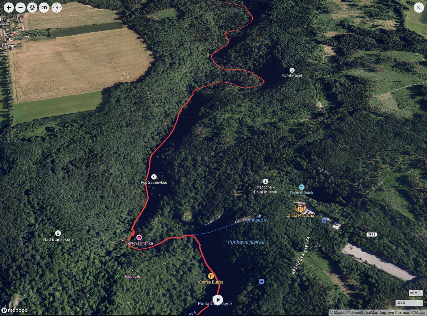 Přiznávám, že mi po přepnutí do 3D mapa nijak 3D nepřišla, teprve když jsem přehodil na satelitní zobrazení, už to 3D začalo připomínat. Problém totiž je, že kolem baráku mám okolní kopce s převýšením 200-300 metrů, což není nic moc. Lépe vypadají údolí, která jsou úzká a hluboká, zejména ta krasová. Tam už nějaký 3D efekt patrný je.