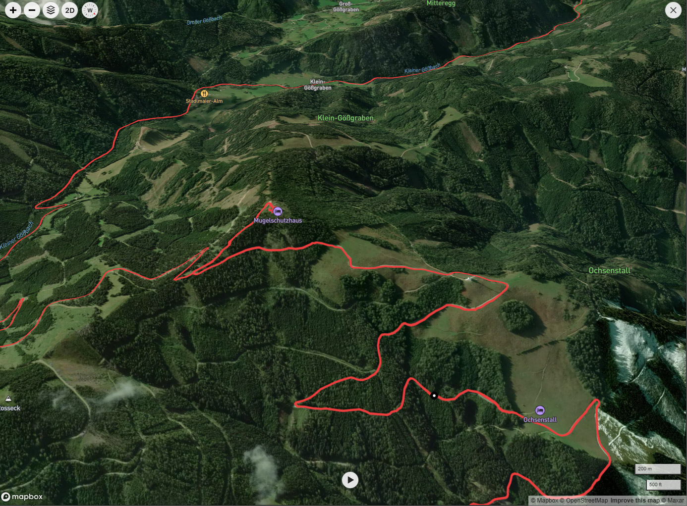 Když jsem se pak podíval na svoje aktivity v Alpách, už byl 3D efekt zřetelnější i v kopcích, protože tam jsem měl převýšení přes 1 000 metrů. Ale stále to je jakési takové jalové. Problém je, že si mapu nemohu ani otáčet, ani měnit její sklon. Pak by byl 3D efekt daleko lepší. Je to tedy stále jen na půli cesty.