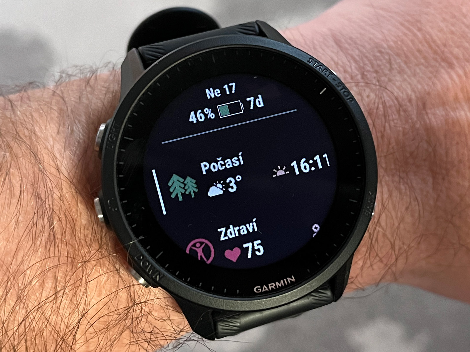 Co bych ale rád zlepšil, jsou standardní vzhledy hodinek. Používám výhradně ručičkové a těch mají Forerunnery obecně pomálu. Tady je použitelný jen jeden jediný, a to ten, který provází Garminy už od nepaměti – bohužel ukáže jen čtyři datová pole a mně by se hodila šestice; tak jako na FR 965, nebo Fénixech. Uživatelské vzhledy nemám rád, špatně se konfigurují a zpravidla hodinky zpomalují.