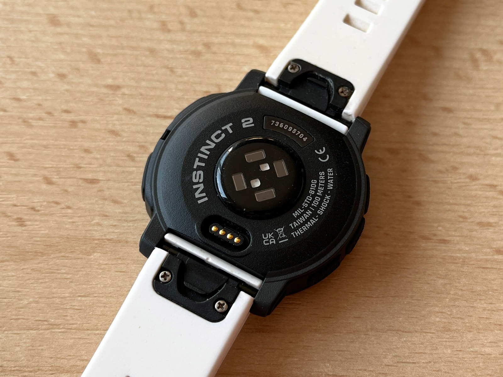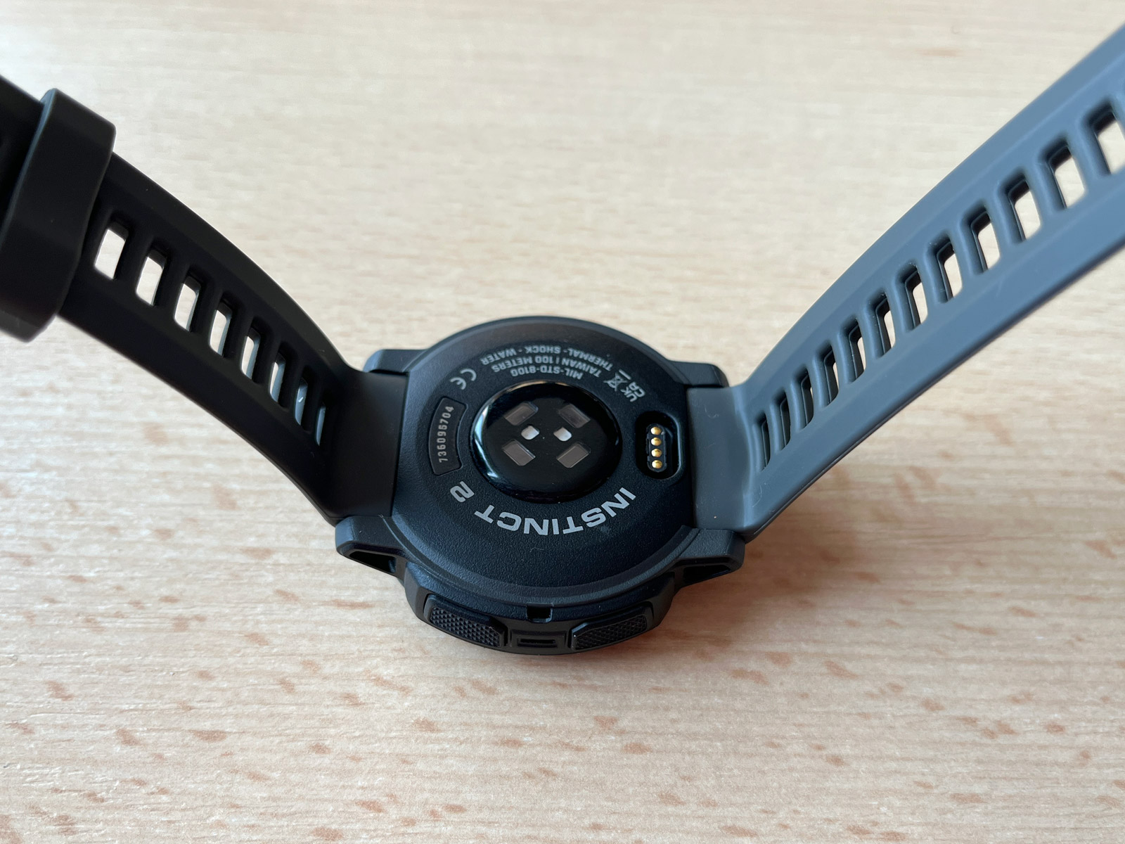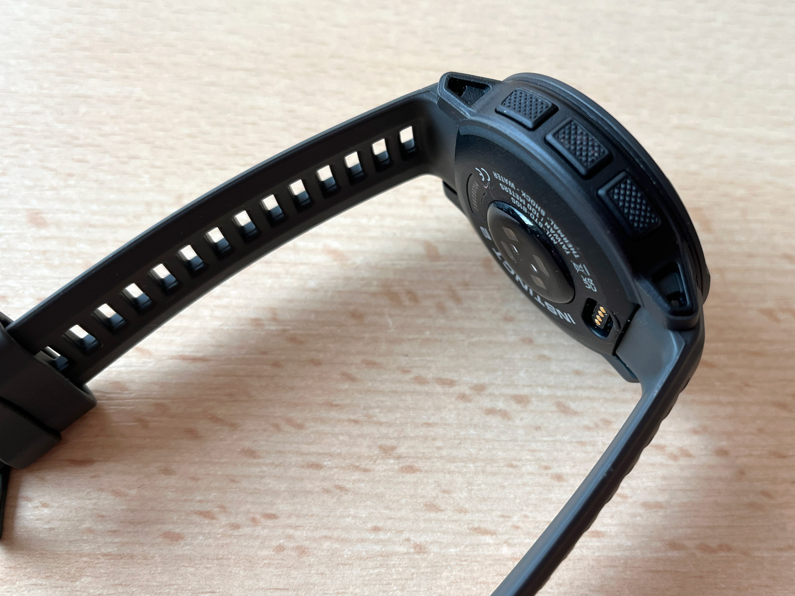 Na zadní straně hodinek najdete optiku čtvrté generace, ale oproti I2X v jiném provedení – nemají ochranný kroužek, čili pokud budete hodinky vozit na držáku kola, může se plast teoreticky trochu poškrábat. Stejné provedení má i model Venu 2, první hodinky s Elevate 4. Ochranný kroužek se poprvé objevil až u Fénixů 7, Epixů a Venu 2 Plus; ty mají navíc krycí sklo, ne plast.