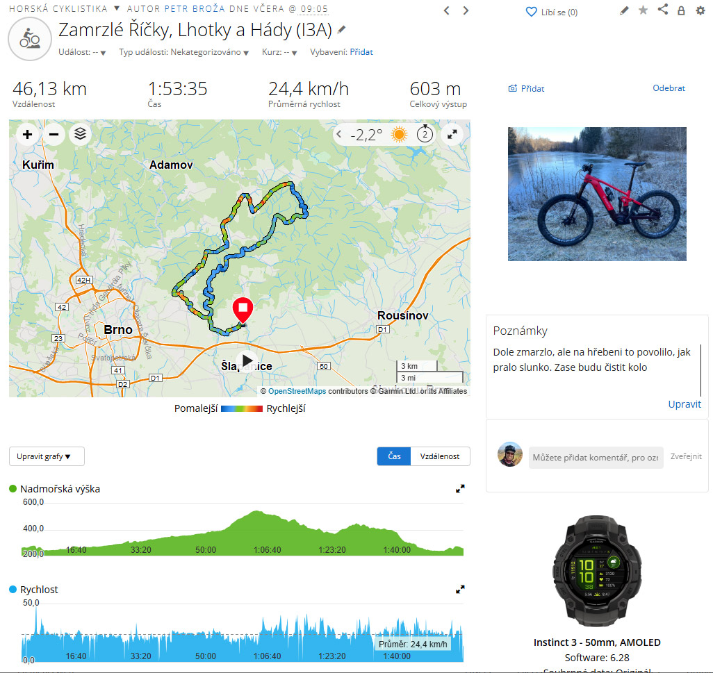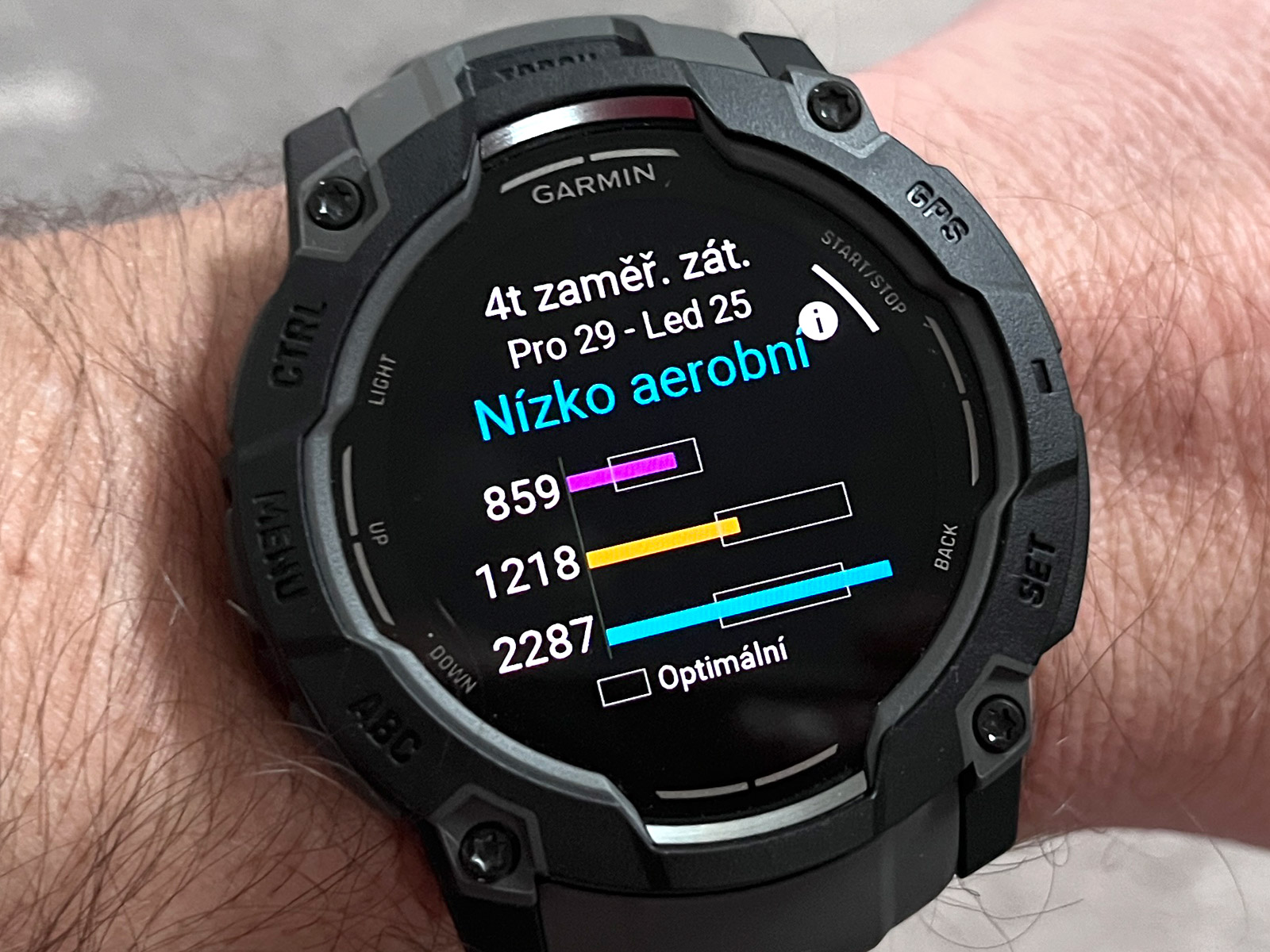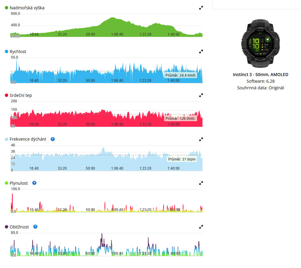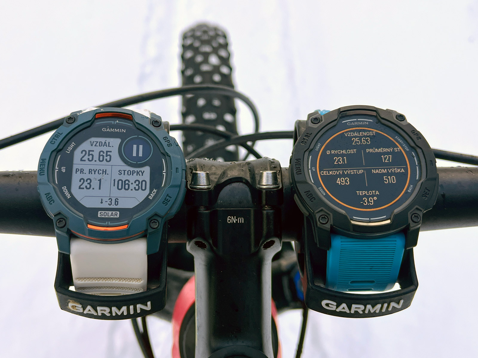 V aktivitě jsou daleko lepší solární Instincty, které mají jednak krásně čitelný displej, jednak jsou datová pole vidět lépe; tedy až na to jedno maličké dole, které je titěrné. Ale třeba tepovku nebo rychlost odečtu z displeje podstatně rychleji. I když je displej jako takový menší než u I3A. V aktivitě se mi zkrátka používají Instincty s AMOLED hůře. Přitom s takovými Forerunnery 970 nebo F8 Pro nemám naprosto žádný problém.