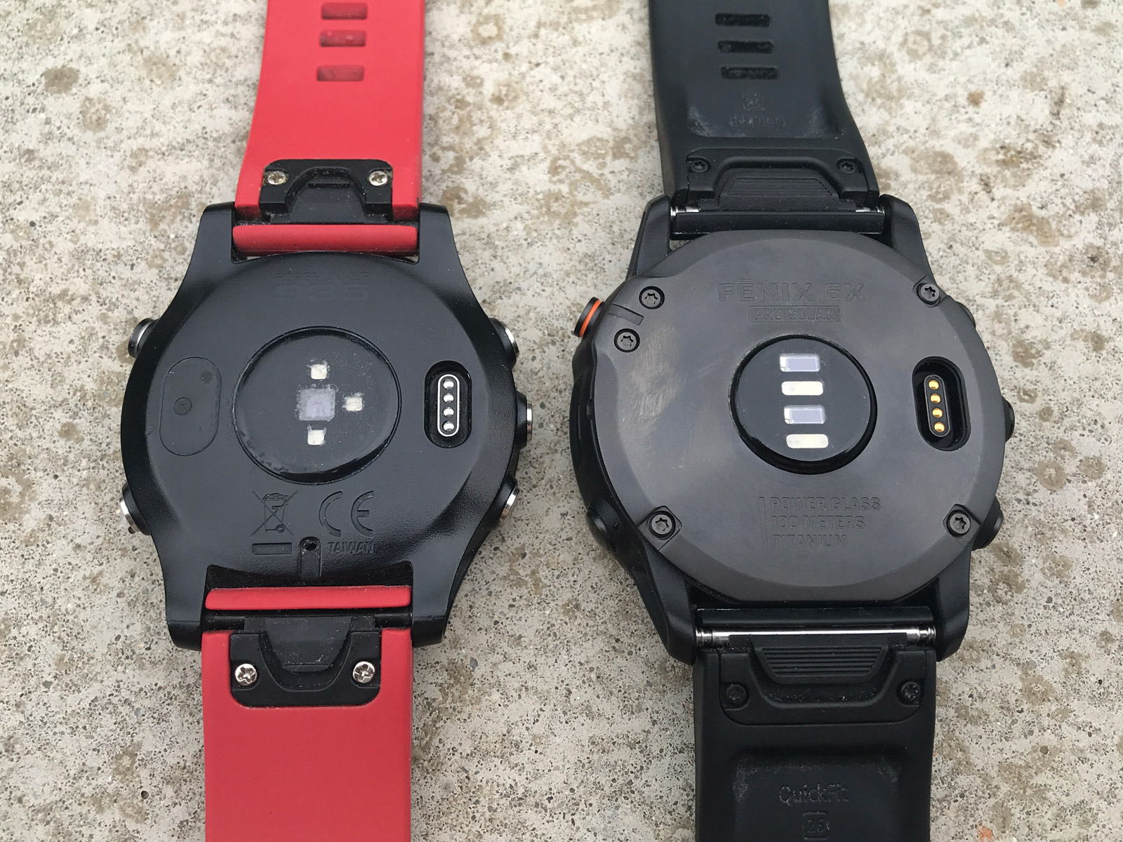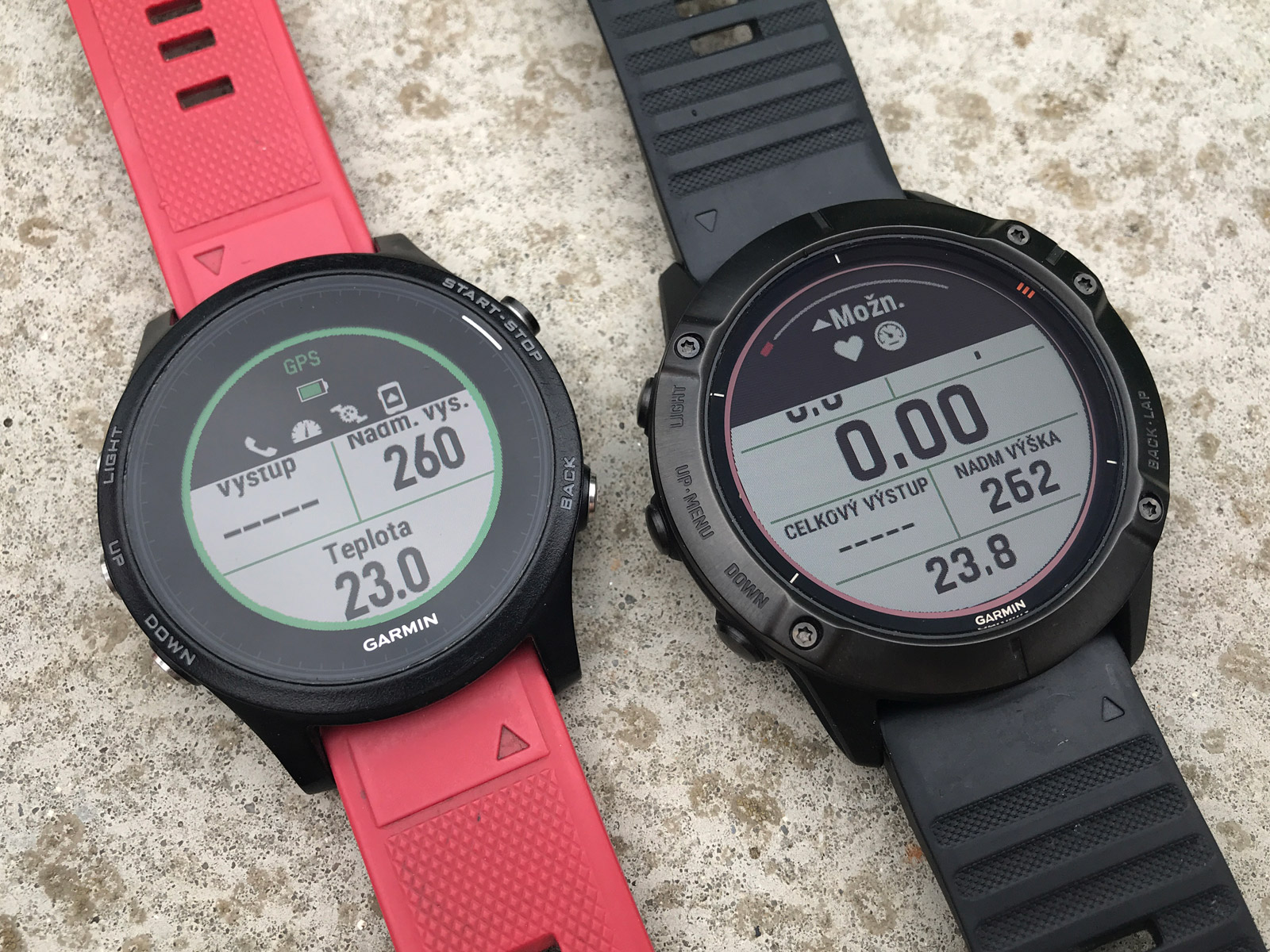 Forerunner 935 vs. Fénix 6X Pro SolarSe světlým pozadím už je ale tozdíl znatelný