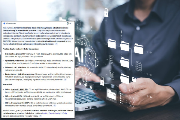 Když jsem připravoval článek ze zkušenostmi s Instincty 3 Solar, chtěl jsem najít odkaz na článek Hodinky Instinct 3 Solar mají nejlépe čitelný displej. Za všech okolností. V tomto ohledu nemají konkurenci. Někdy k tomu používám hledání přímo na webu, někdy na Googlu. Tentokrát to byl Google. Kromě odkazu a dalších článků na webu na mě vyskočila i tato rešerše: