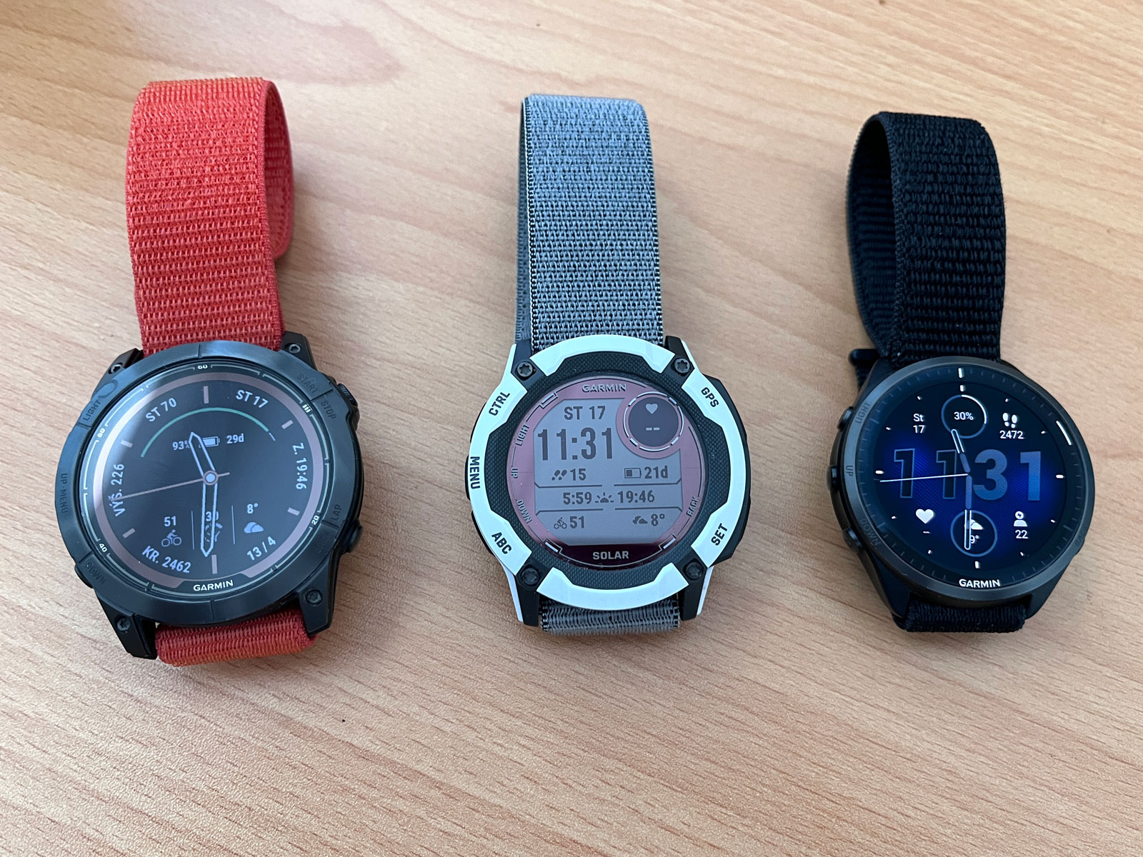 Takže mi červený nylonový UltraFit udělal fakt radost, tmavé Fénixy s nimi vypadají parádně a ještě se dobře nosí, protože řemínek UltraFit je fakt lehoučký. S nimi váží jen 68 gramů. A Instincty 2X dokonce jen 53 gramů, ty na ruce necítím už vůbec. Zásadní nevýhodou, jakou u UltraFitu vnímám, je nemožnost instalace na řídítka kola.