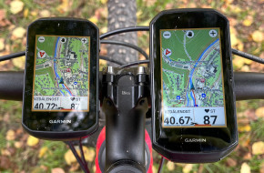Už více než rok jezdím s Edge 1040 na střídačku s Edge 1050 a s cyklonavigací E1050 se mi obecně jezdí lépe. Má podrobnější mapu a za většiny okolností (ráno, večer, v zimě) je na displej vidět lépe. Ale na přímém slunci je transreflexní displej stále lepší. Řadě Edge x50 by pomohlo zvýšit o pár nitů jas, protože FR 970 či Venu X1 jsou na slunci vidět lépe. I za cenu drobného snížení výdrže (ale jen v létě).