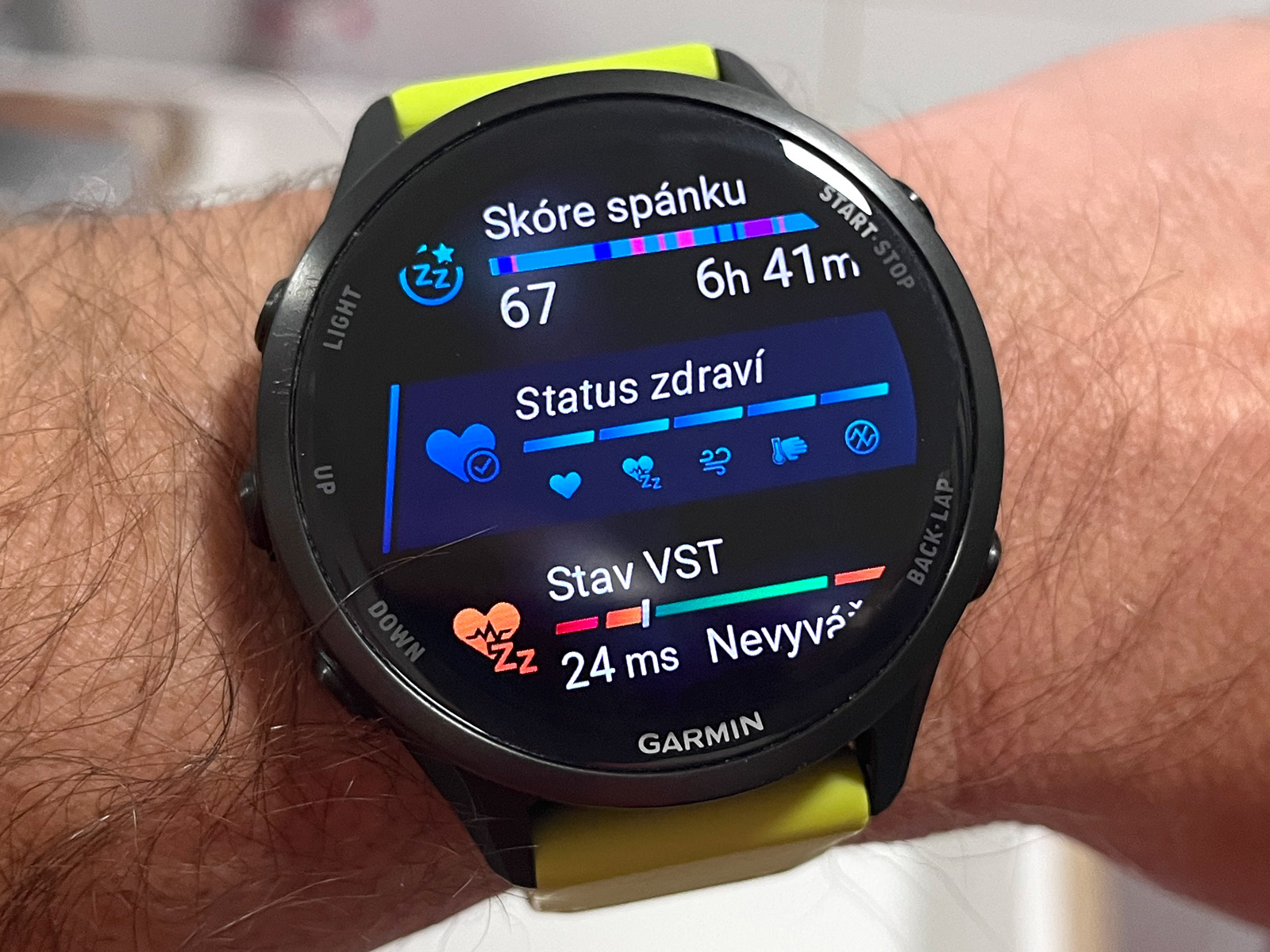 Stejně jako řada Fénix 8 také nové Forerunnery dostaly funkci Status zdraví. Ta byla představená souběžně s Venu 4 a nyní přešla z betaverze do finálky. Co umí? V podstatě sdružuje pět základních metrik - tepovou frekvenci, noční VST, frekvenci dýchání, noční Pulse Ox a teplotu pokožky ve spánku a hlídá, zda nevypadáváte z optimálního rozsahu.