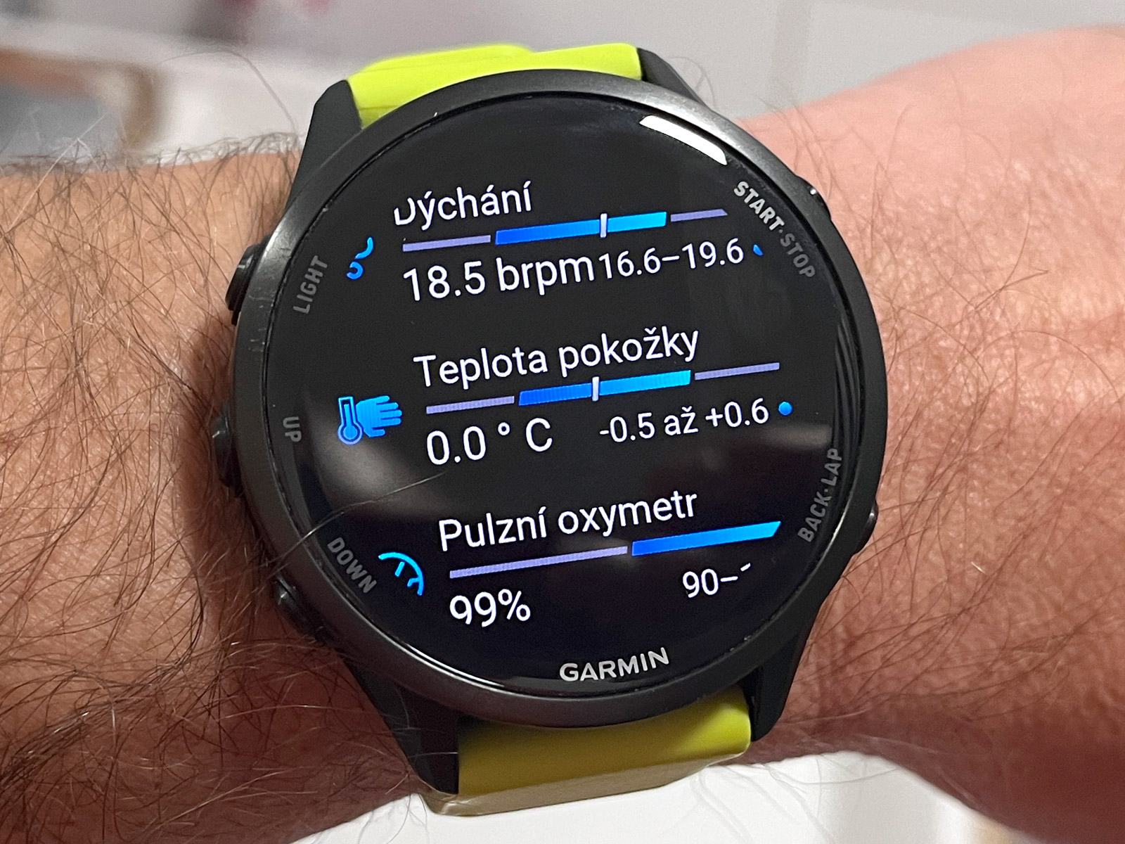 Zajímavé je, že hodinky po mně chtěly čekat několik týdnů, než se tato optima nastaví. Přitom měření všech těchto metrik má Connect k dispozici za posledních několik let. Faktem ale je, že ne každý má aktivní sledování SPO ve spánku, což je jednou z metrik. Přesto se ale první měření ukázala už po nějakých cca osmi dnech a od té doby se přehled aktualizuje každý den ráno.