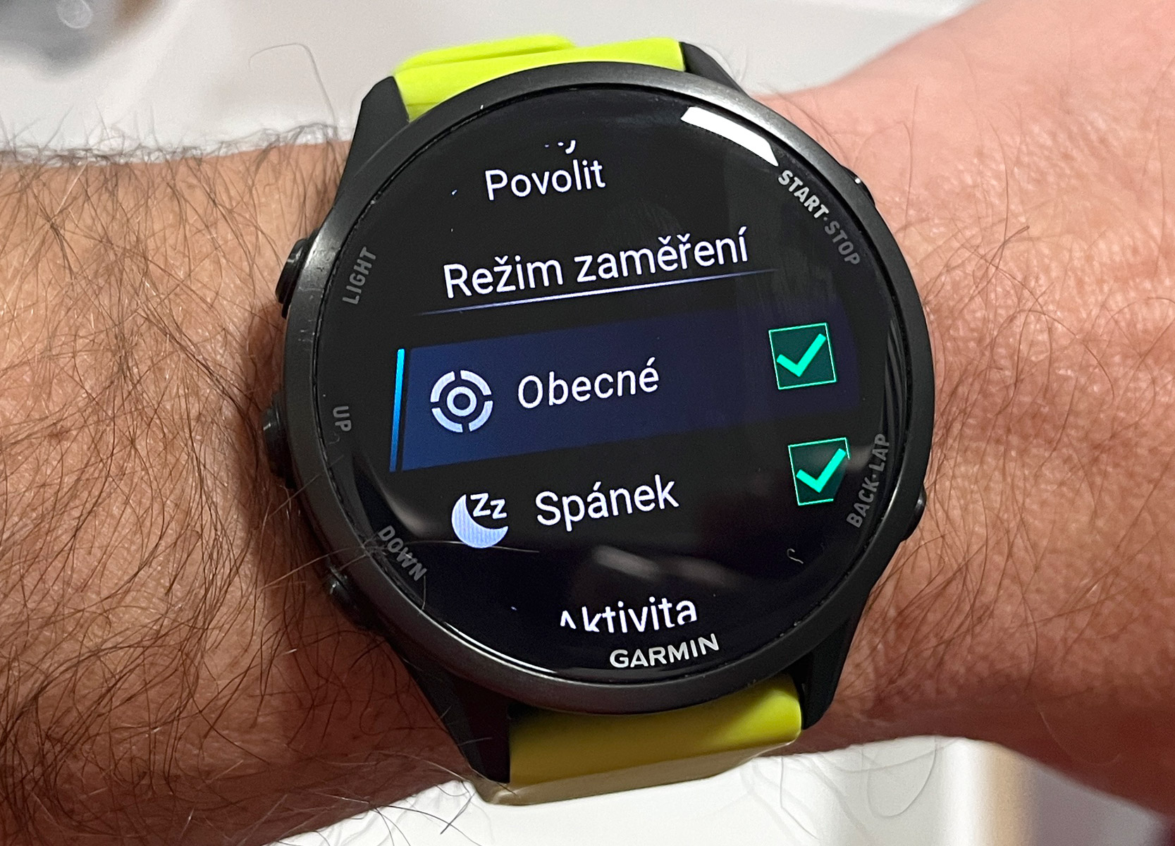 Další detaily: Režim zaměření: Profily chování hodinek pro různé situace a aktivity. Můžete změnit úplně cokoliv