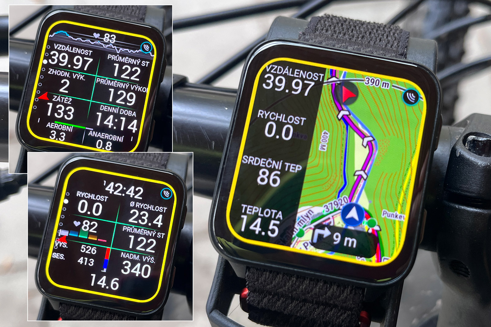 Už když jsem měl tyto hodinky poprvé na kole, mě naprosto uchvátily svým velkým displejem, který má pro aktivity praktický obdélníkový tvar - stejně jako Edge. A hned jsem svoje dojmy zveřejnil na webu, ještě dříve než recenzi. Obří mapa, až šest datových polí na obrazovce společně s ní a ještě k tomu navigační instrukce.