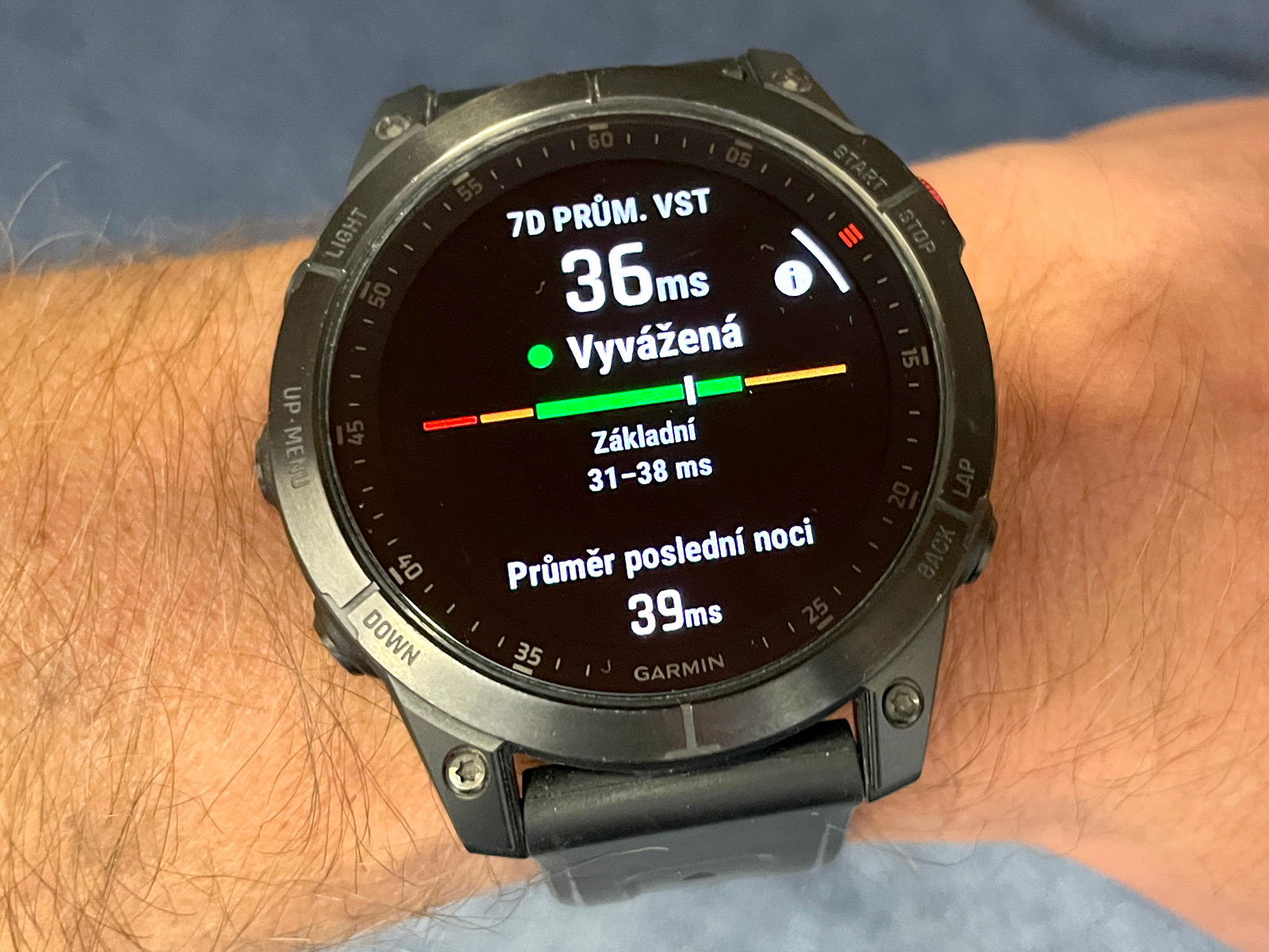 Takže najednou se mi zátěž zvýšila skoro na dvojnásobek, z nějakých 900 na 1545. A samozřejmě vyletěla z optimálního rozsahu, takže ji hodinky správně identifikovaly jako vysokou. Regenerace vyskočila rovněž nahoru, a protože mi ten den ohodnotily hodinky spánek jako špatný, Připravenost k tréninku spadla na moje historické minimum. Naopak Stav tréninku se z Udržování změnil na Produktivní i přes vysokou zátěž a optimální hladina krátkodobé zátěže se o kus zvedla.