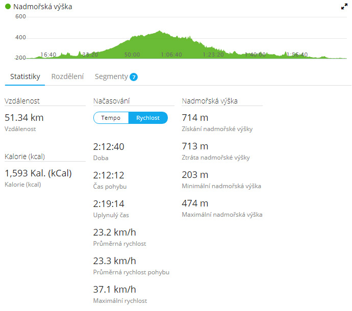 Zmíněný Edge Explore (starší) sice nastoupané metry ukáže, jsou ale počítány z GPS a tudíž při cestách lesem se slabším signálem to zkrátka není ono. Navíc je po přenesení do deníku Connect tento údaj stejně ignorován a výška se určí z profilu na mapě. Například u této konkrétní jízdy ukazoval Edge Explore 455 nastoupaných metrů, zatímco po přenesení do Connectu se výška přepočítala na 714 metrů. Edge 1030 přitom ukázal 392 m a Edge 705 pak 411 m.
