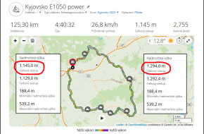 Dobře je to vidět na srovnání jízdy kolem Svitavy na sever od Brna. Zde je profil mapy úplně mimo, na zcela rovné silnici jsou „hrboly“ vysoké i několik desítek metrů. To samé platí i pro cestu z Adamova do Křtin. Není tak problém na cestě, která má převýšení cca 250 m, najet výšku okolo tisícovky. Zatímco na Edge Touring Pro bez barometru je cesta „chlupatá“, s Edge 1030 je krásně vyhlazená a nastoupané metry odpovídají skutečnosti. Je to ale extrém. Na většině cest, které jsem zkoušel, se nastoupané metry podle topografického profilu tolik neliší, i když rozdíly tam stále jsou.