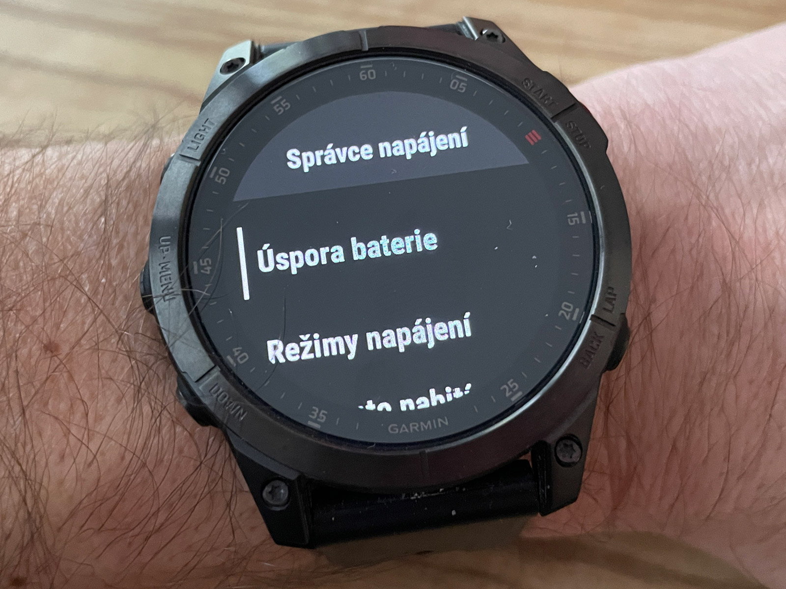 V tomto ohledu mi zobrazení na Fénix 6 přijde přehlednější, protože tam jsou položky, které nemají ikony (čili podmenu) vystředěné, větším fontem a navíc oddělené linkou. Je to grafičtější a hezčí. Skoro mi to na Epixech přijde jako nedodělané, že to jen tak někdo nahodil a čeká, že si najde čas to vylepšit v příštích verzích firmwaru. Když totiž zobrazíte tři položky pod sebou, ta horní a spodní je zleva useknutá za okrajem. To se prostě nepovedlo. Stačilo ty položky vycentrovat.