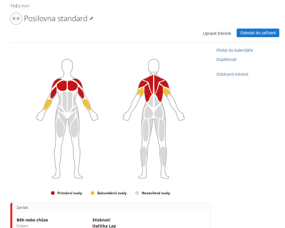A konečně si takto zvolený trénink přidáte do svých oblíbených, případně rovnou pošlete do hodinek. Najdete jej pak v konkrétní aktivitě v menu Tréninky.