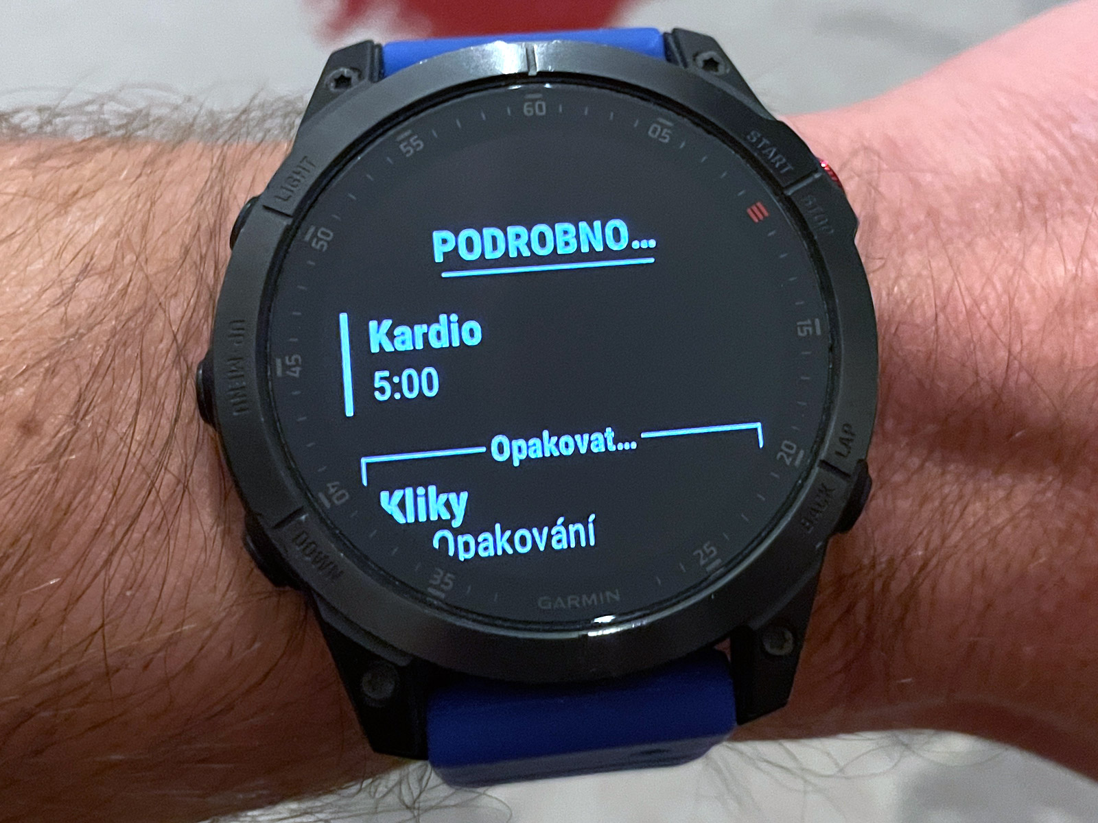 Možností je opravdu hodně a stojí to nějaký čas vše podrobně prozkoumat. Výhodou předpřipravených tréninků je především to, že hodinky se nemusí trápit s rozpoznáváním cviku, maximálně sledují počet opakování (a ty můžete ručně upravit). Není nutno pak editovat záznam aktivity v deníku Connect – platí to především pro Sílu. Hotový trénink pak uložíte a můžete odeslat do hodinek. A samozřejmě ještě před cvičením si prohlédnout jednotlivé kroky a pokud mají animaci, tak se na ni podívat.