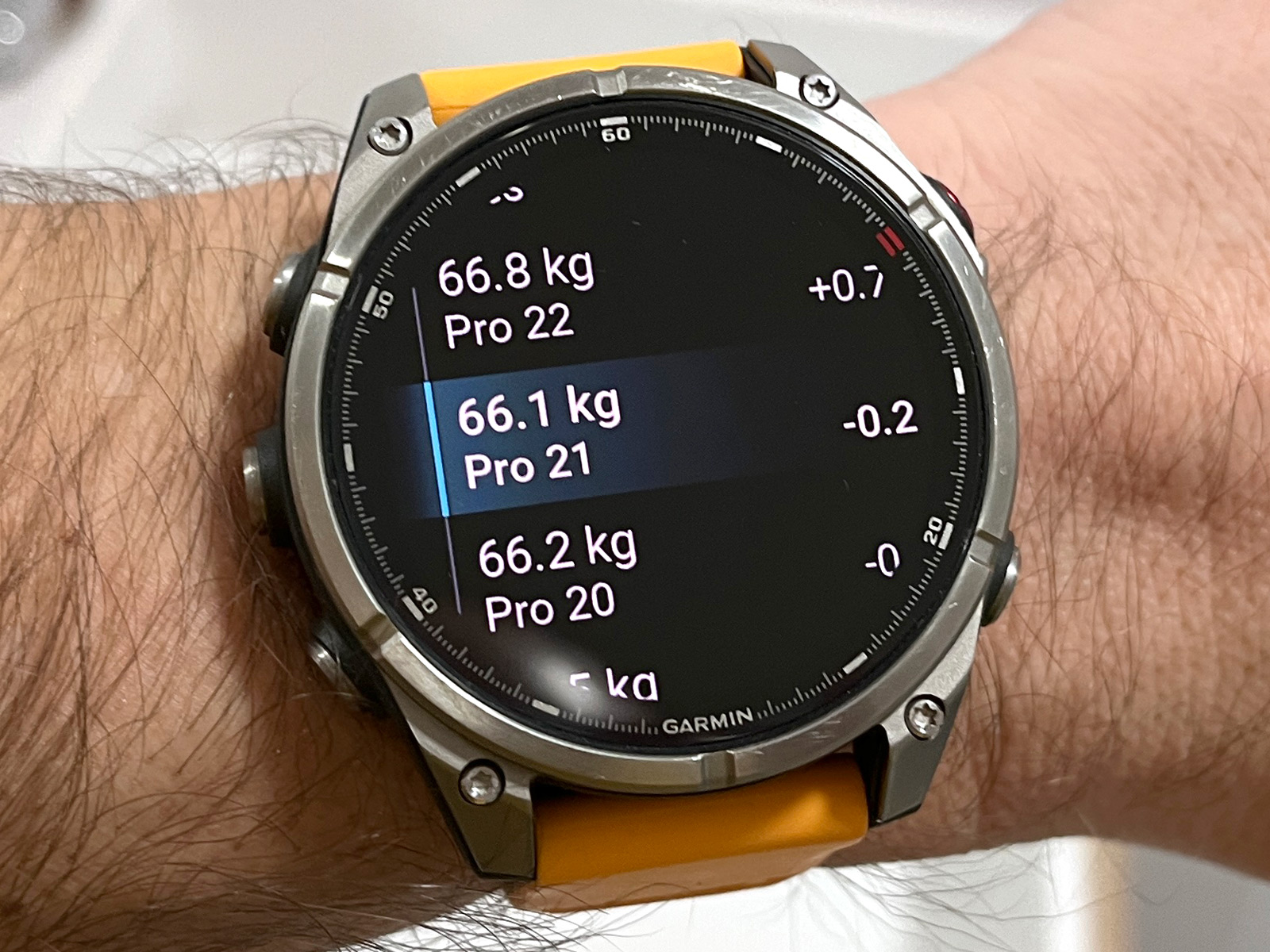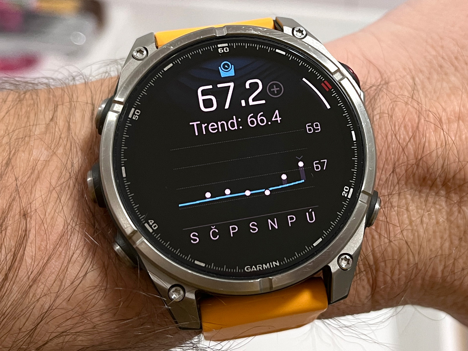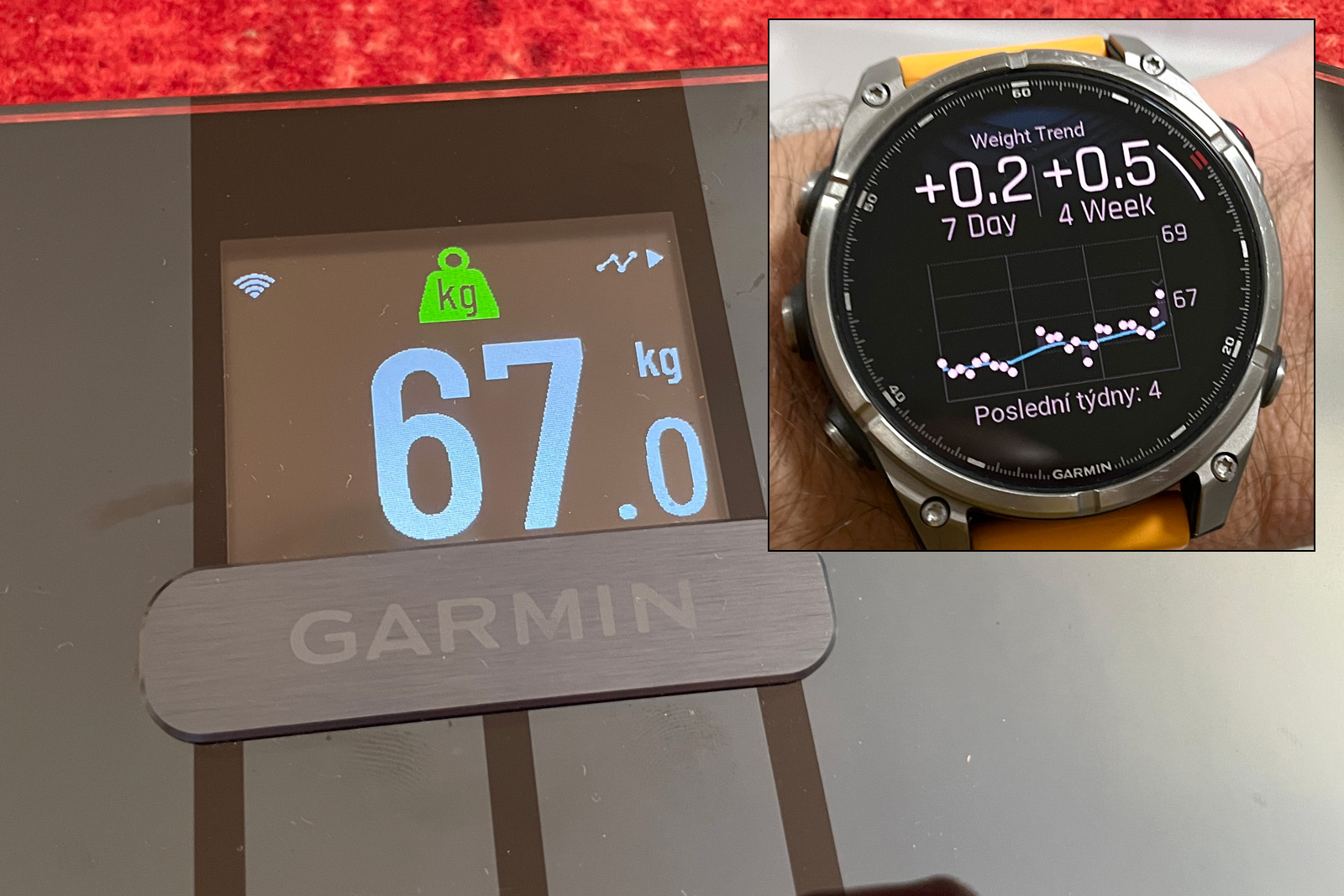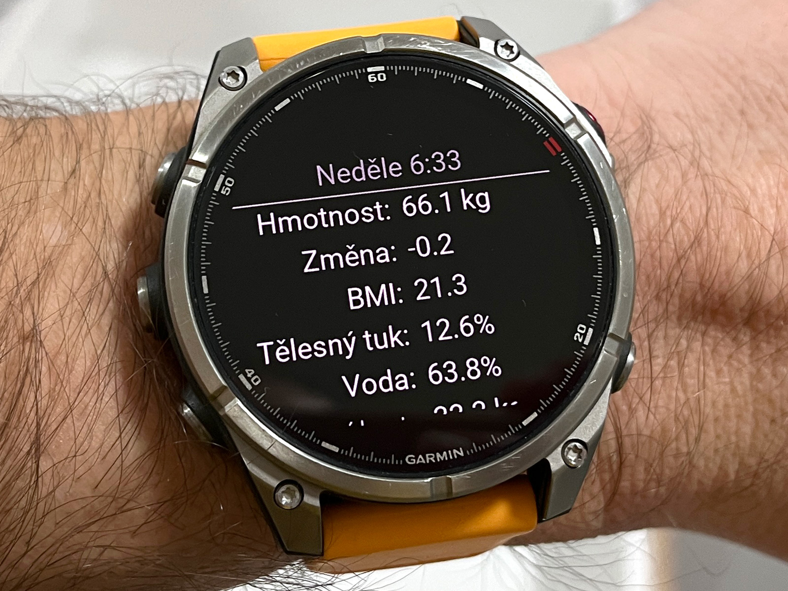 Zkrátka to, co zjistí během vážení Index S2. Pokud si někdo hlídá hmotnost, může to být užitečné. Všechno toto sice ukáže Connect, ale proč to nemít přímo v hodinkách. Stejně jako další funkce - třeba Můj deník návyků nebo Hydrataci. Garmin dělá, zdá se, vše proto, abyste mobilu museli do ruky brát co nejméně.