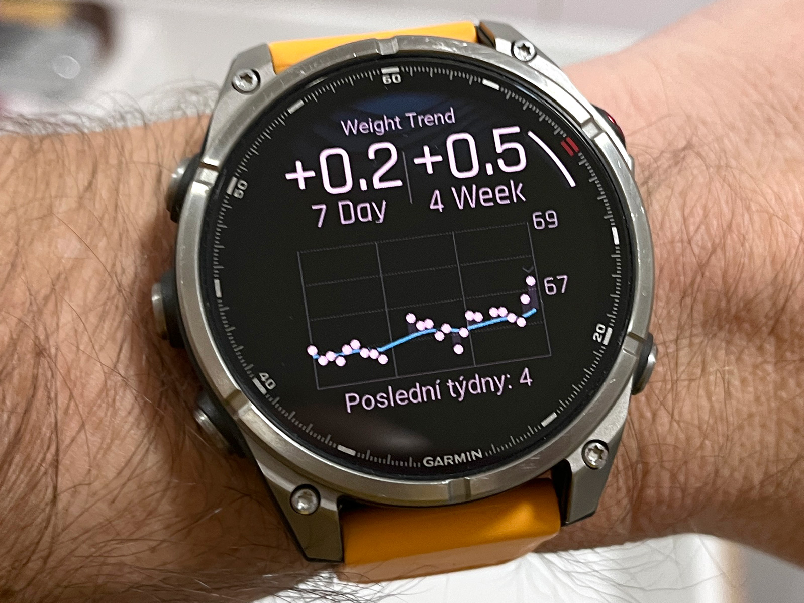 Sledování hmotnosti: Plně vybavený doplněk přímo v hodinkách. Ukáže trendy i podíly tuku a svalové hmoty