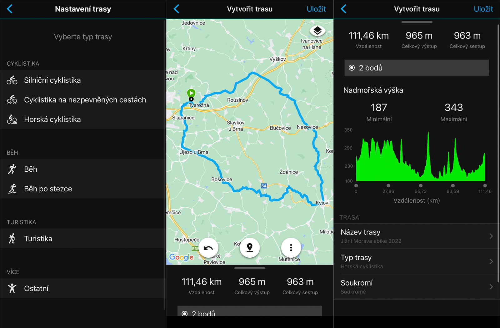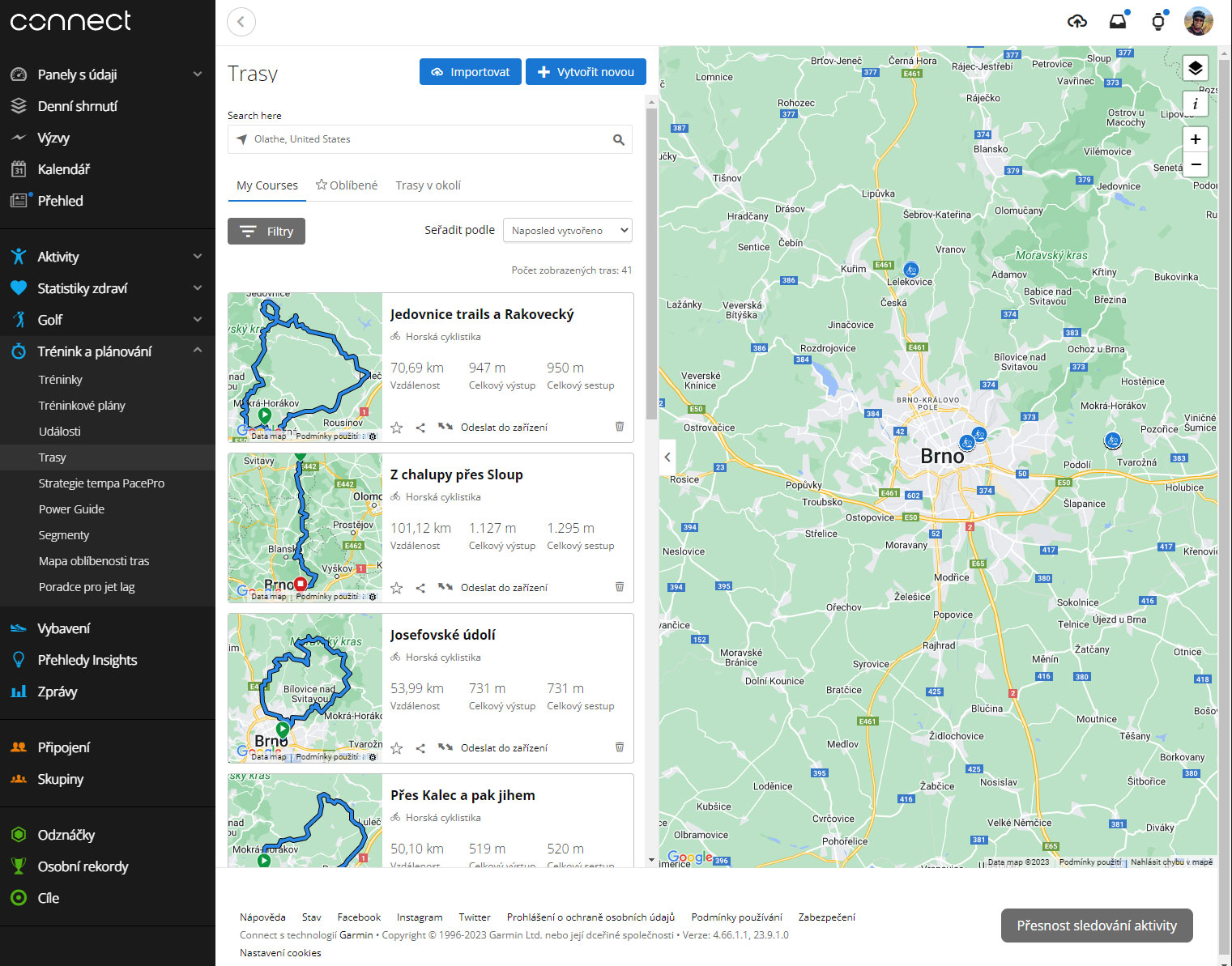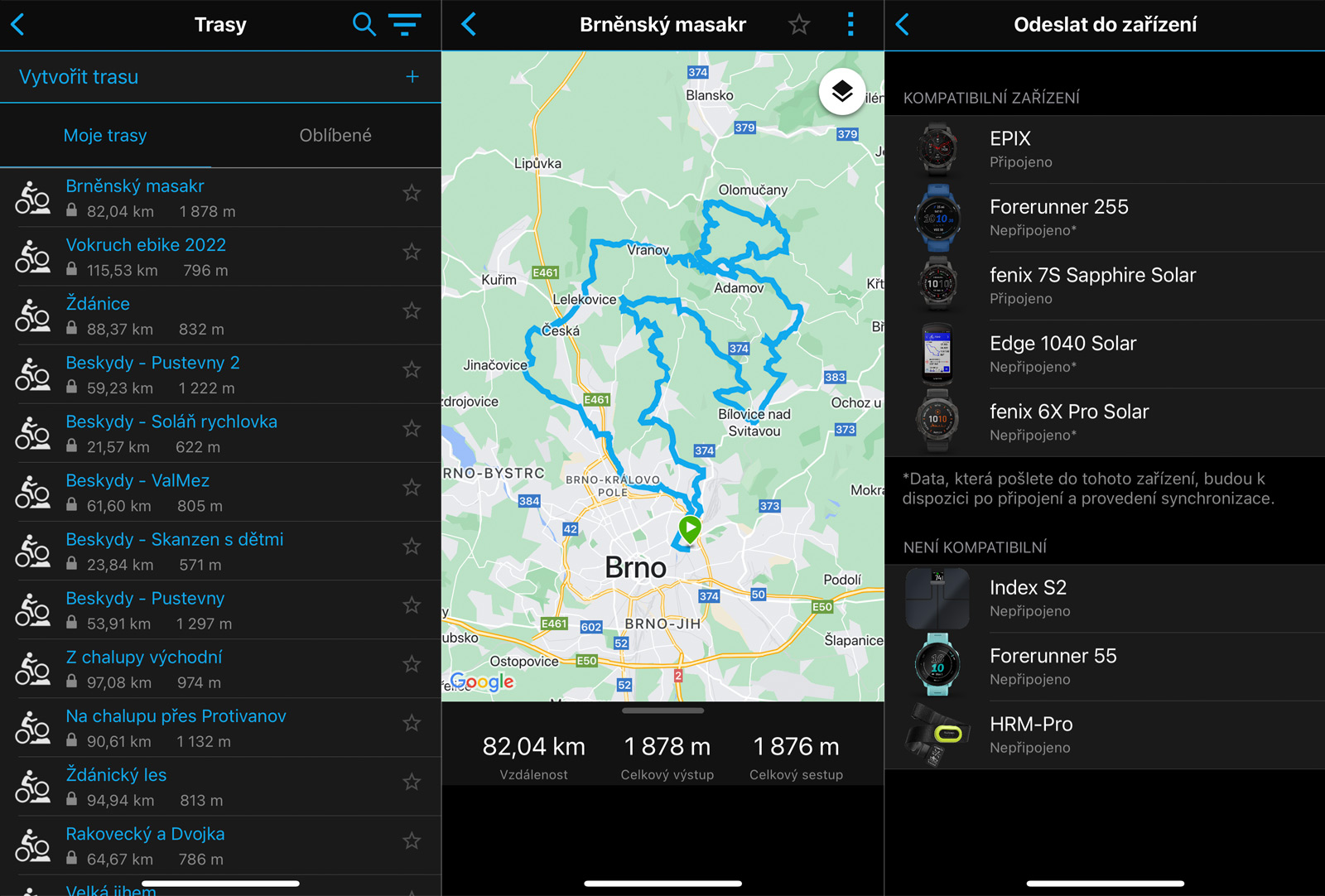 Trasu ve formátu GPX si můžete vytvořit v libovolné aplikaci. Můžete ji také naplánovat přímo v deníku Connect, ale já se s tím upřímně řečeno nikterak nesžil. Cesty si proto chystám v Mapy.cz a pomocí importu přesouvám do hodinek nebo cyklonavigace.