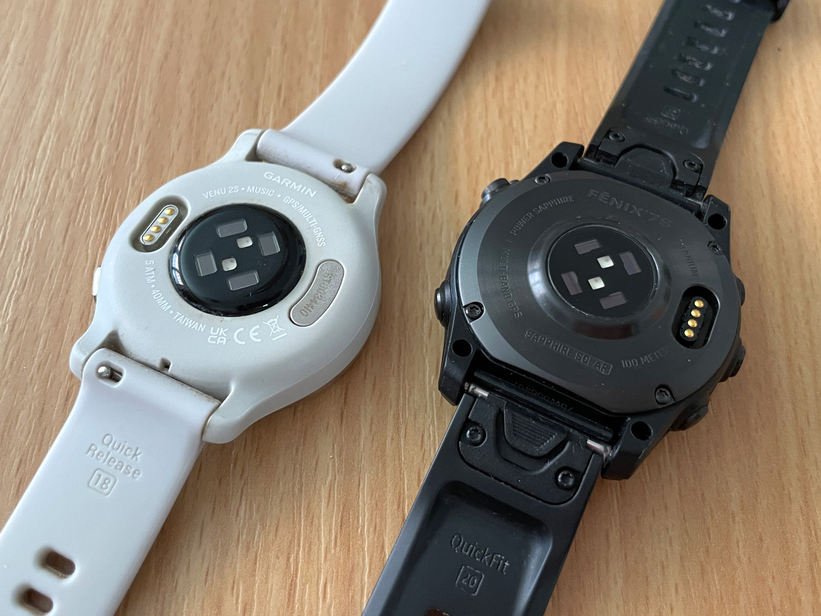 Fénix 7S má rovněž čtvrtou generaci, navíc má optický snímač okolo malý okraj, díky čemuž se jednak sklo nepoškrábe, když položíte hodinky na stůl, jednak světlo optiky méně prosvítá do boku a zejména v noci není tak rušivé jako u starší generace Fénix 6. Snímek zdravotního stavu má F7S také, navíc umí měřit noční hodnoty VST a zobrazit je jako součást metrik Připravenost k tréninku či Stav tréninku. Žádnou z těchto funkcí Venu 2S nemá, měří jen míru stresu (která ale má jako podklad VST).