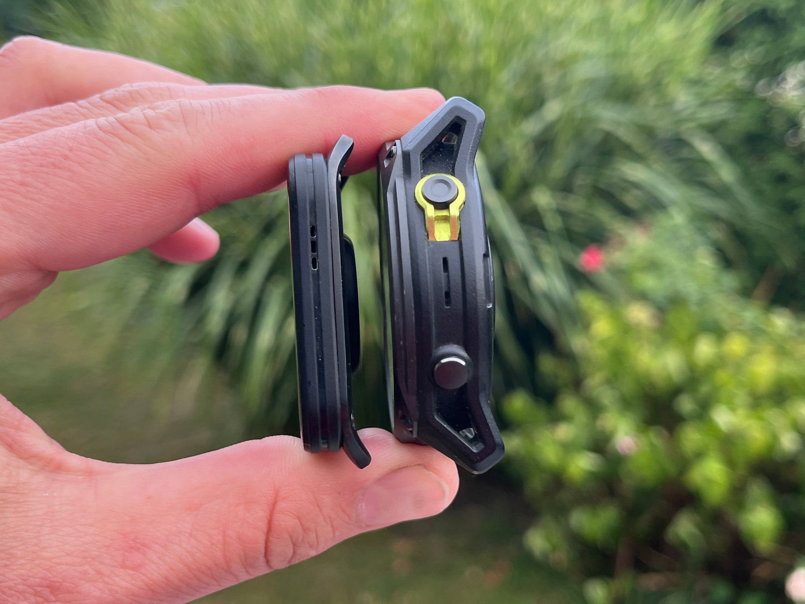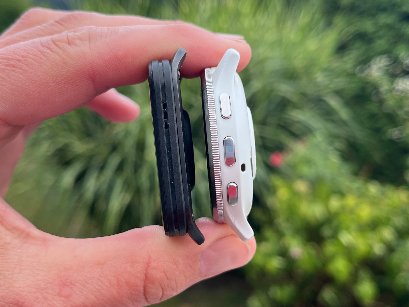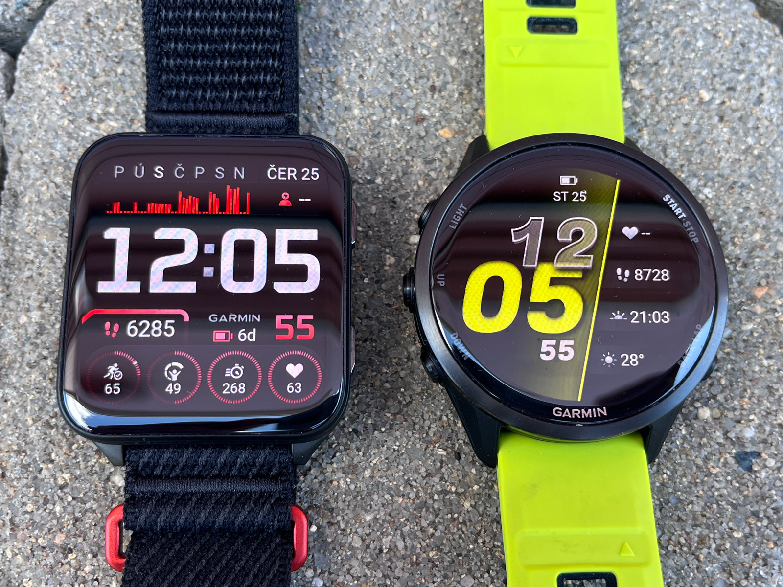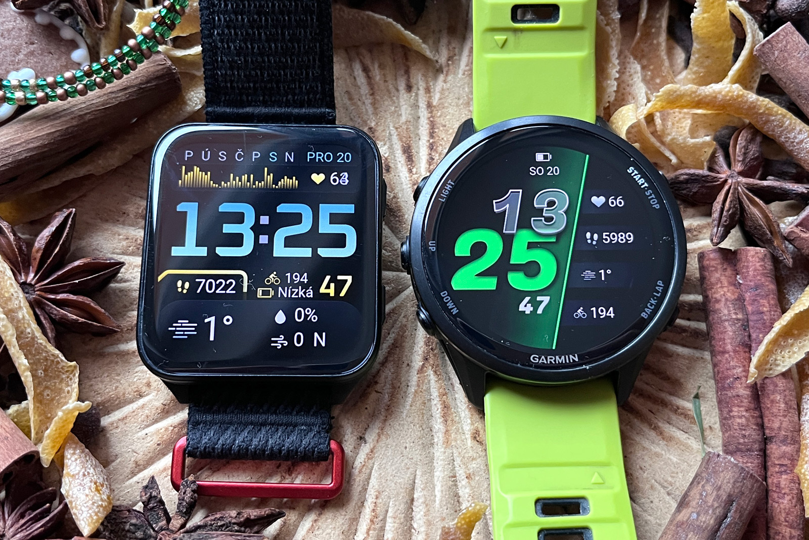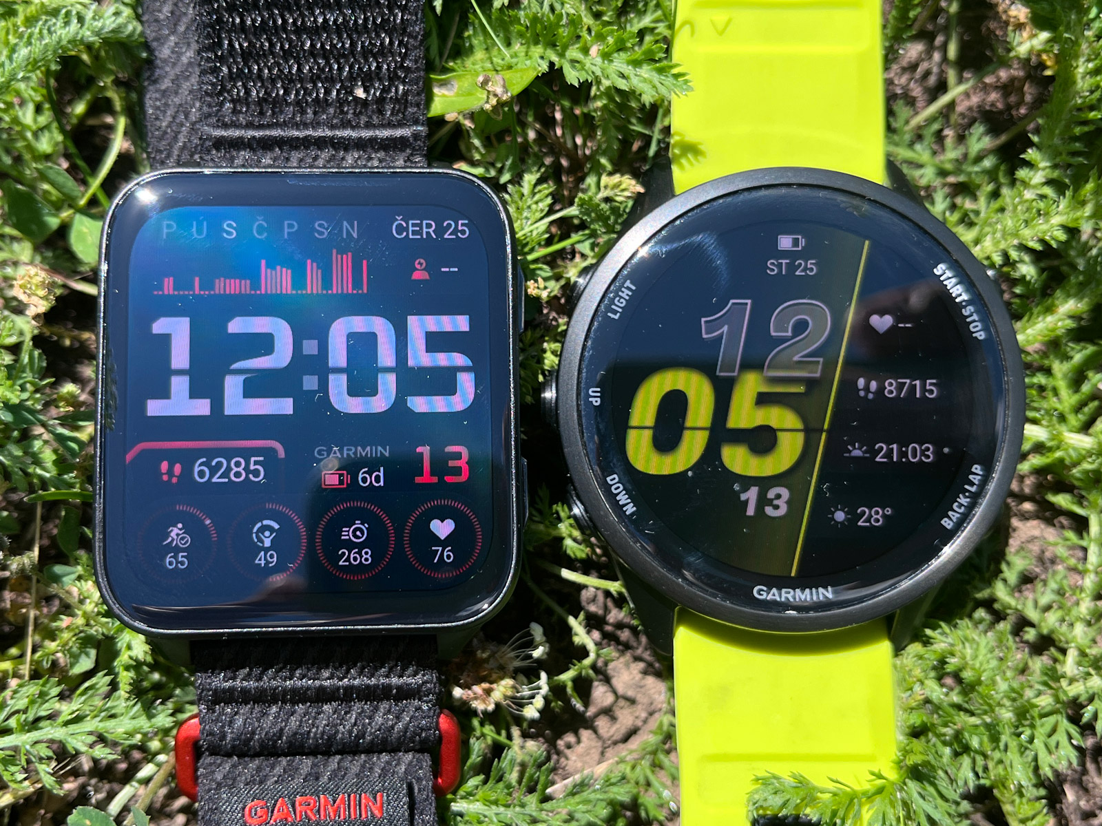 Když si na FR 970 nasadím řemínek UltraFit, dostávám se s hmotností na 45 gramů, Venu X1 přitom váží 40 gramů. Rozdíl v hmotnosti je tedy zanedbatelný. Spíš než hmotnost jde o tloušťku, kdy Venu X1 na ruce nezavazí, a hlavně s nimi málokdy třísknu o futra. Dokonce i smeták mezi ledničkou a zdí vytáhnu, což se mi s FR 970 nepodaří. Tady i milimetry hrají roli.