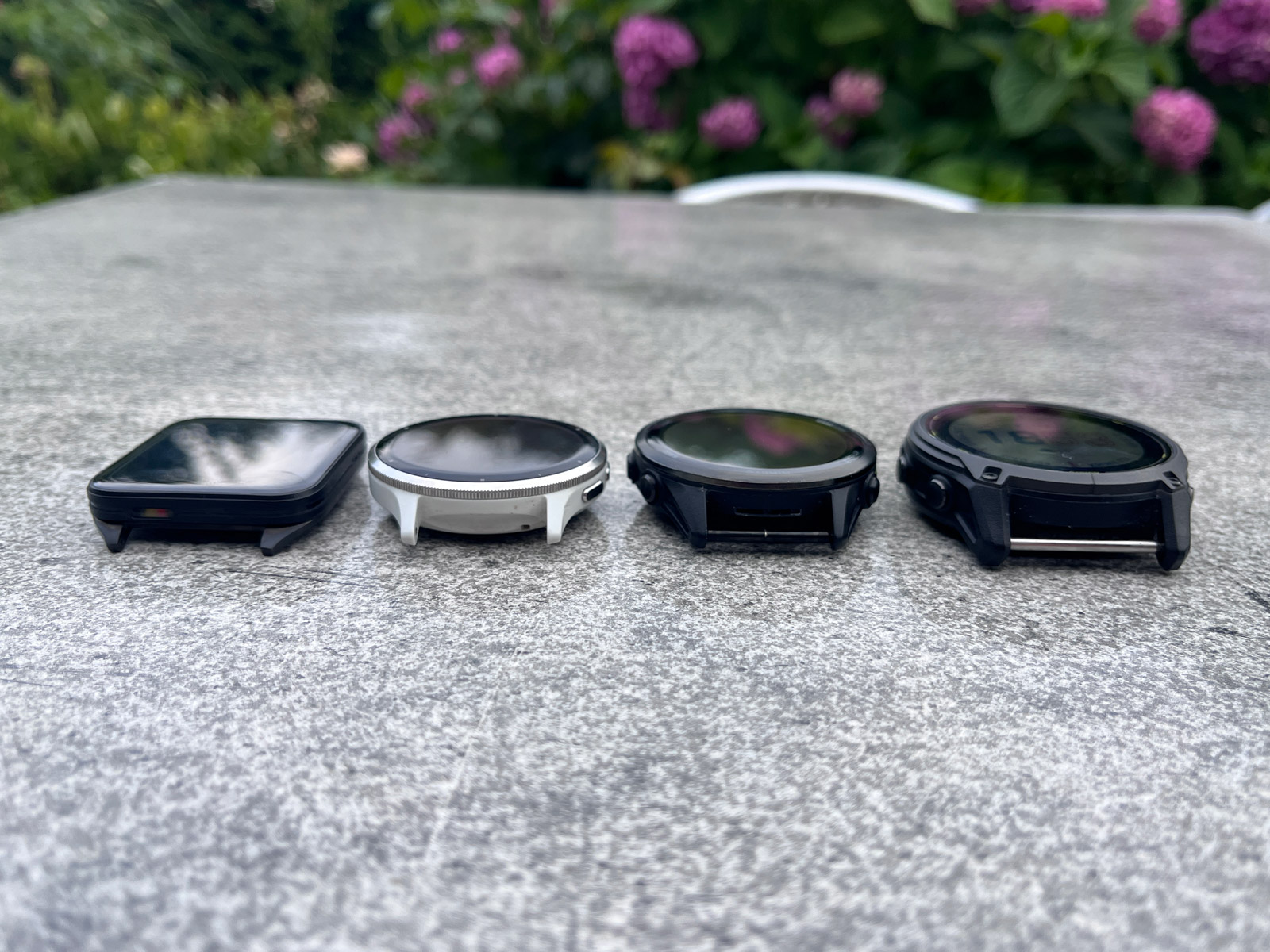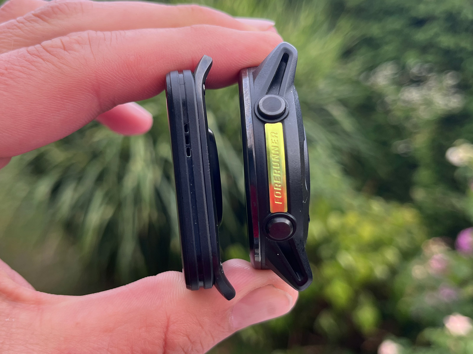 Fotogalerie: Jak tenké jsou hodinky Venu X1? Hodně. Srovnání nejen na ruce s Venu 3, Forerunnery 970 a Enduro 3