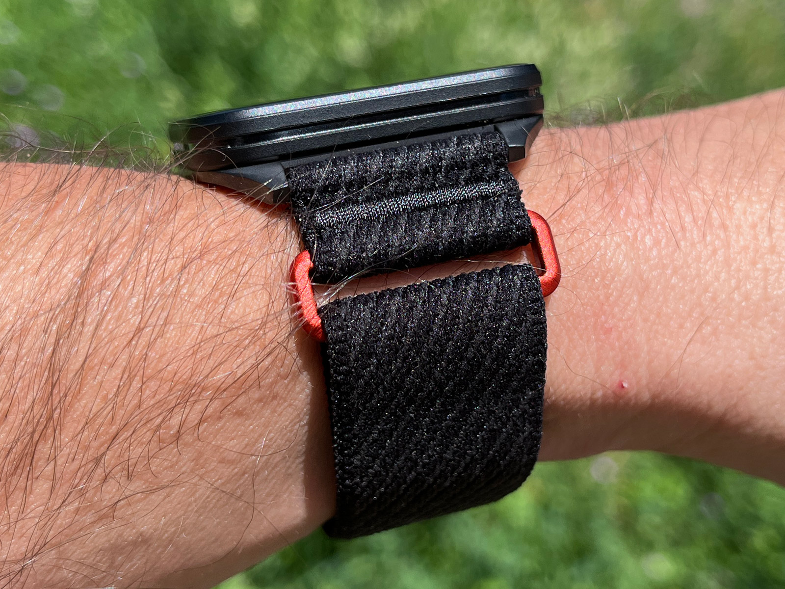 Širší řemínek mi na ruce sedí parádně a s opticky širšími hodinkami vypadá celek lépe, než by tomu bylo u 22 mm provedení. Potíž je bohužel v tom, že Comfort Fit má jen tři „lepítka“ pro uchycení, zatímco UltraFit čtyři a ještě k tomu širší. Navíc se mi řemínek v místě suchého zipu začat trochu „drolit“, a to mám VX1 jen půl roku a reálně jsem je nosil tak dva měsíce.