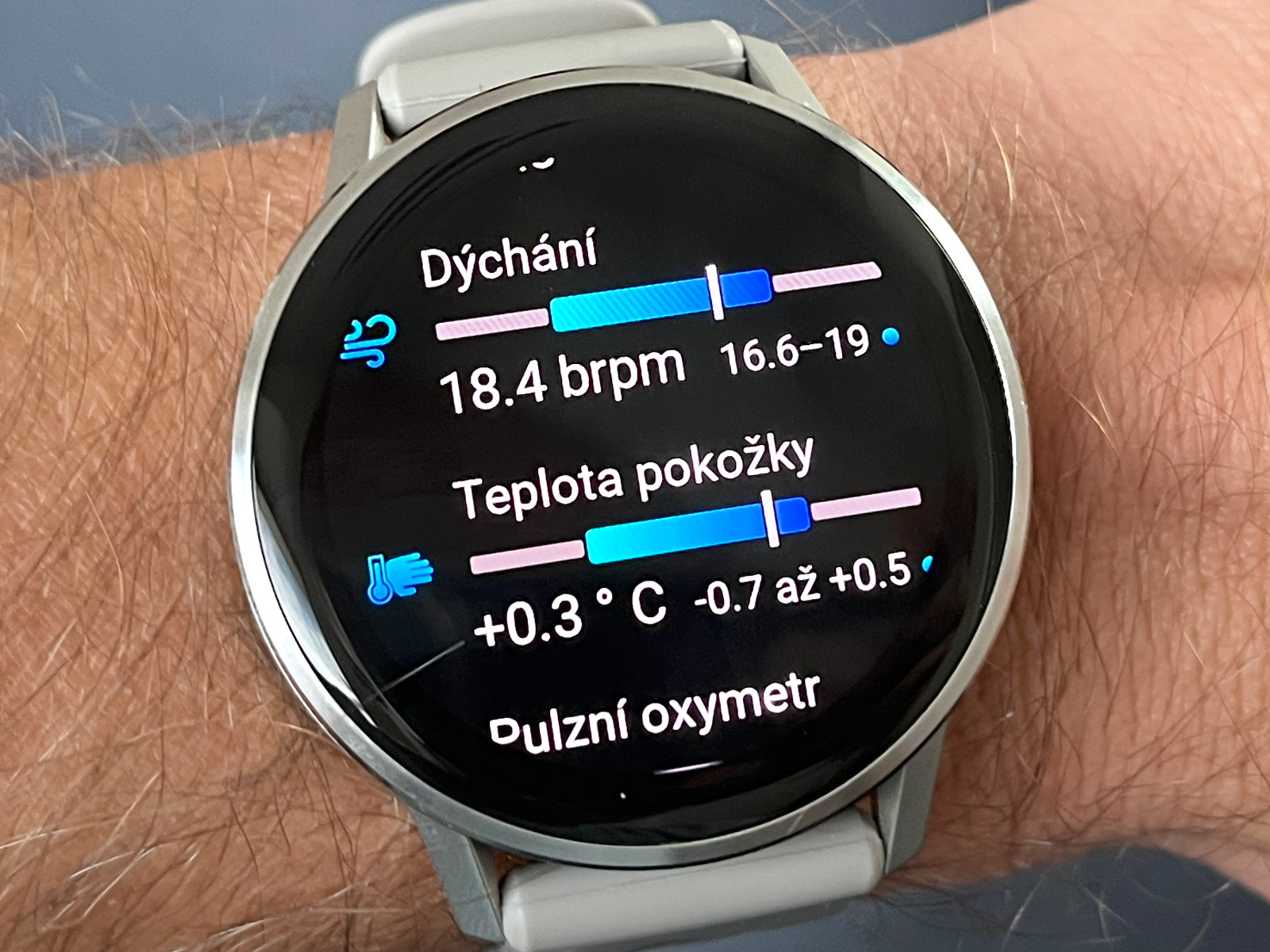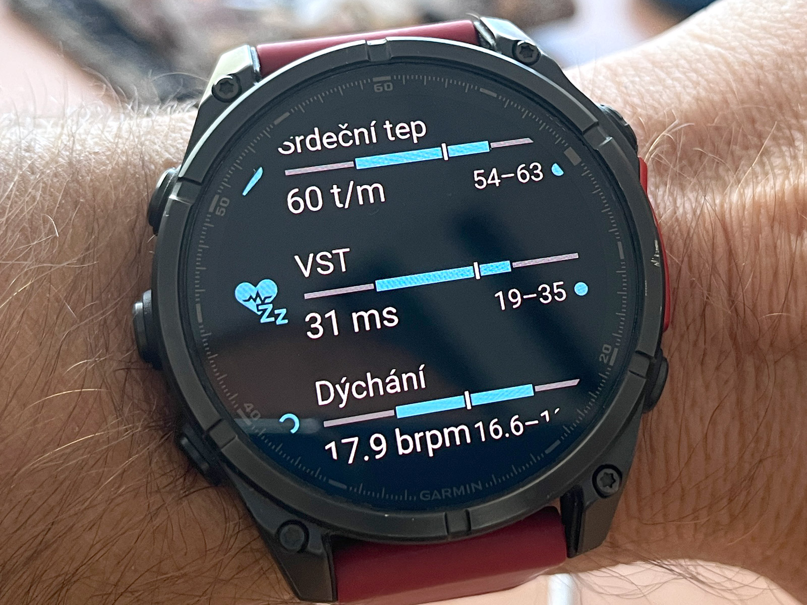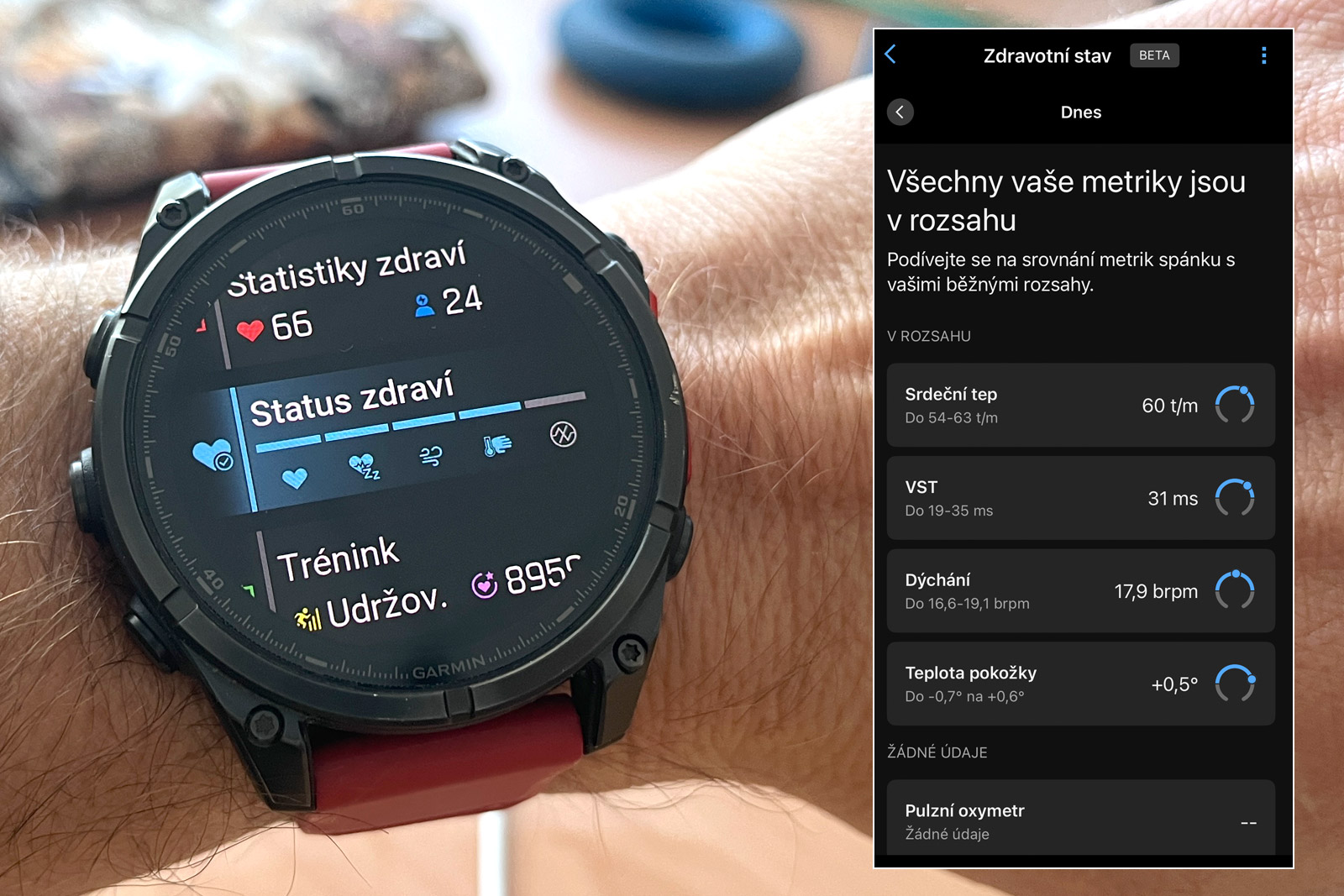 Jedná se o naprosto stejnou pětici klíčových metrik, které sledují jak Whoop, tak Apple. Čili by se mohlo zdát, že si tu Garmin bere inspiraci, ale upřímně řečeno, Garmin už toto všechno hlídá pomocí funkce Snímek zdravotního stavu a také Připravenost k tréninku (bez teploty kůže). Teplota pokožky je mimochodem měřením, které Garmin zatím kromě zdraví žen (menstruační cyklus) k ničemu dalšímu vlastně nevyužívá.
