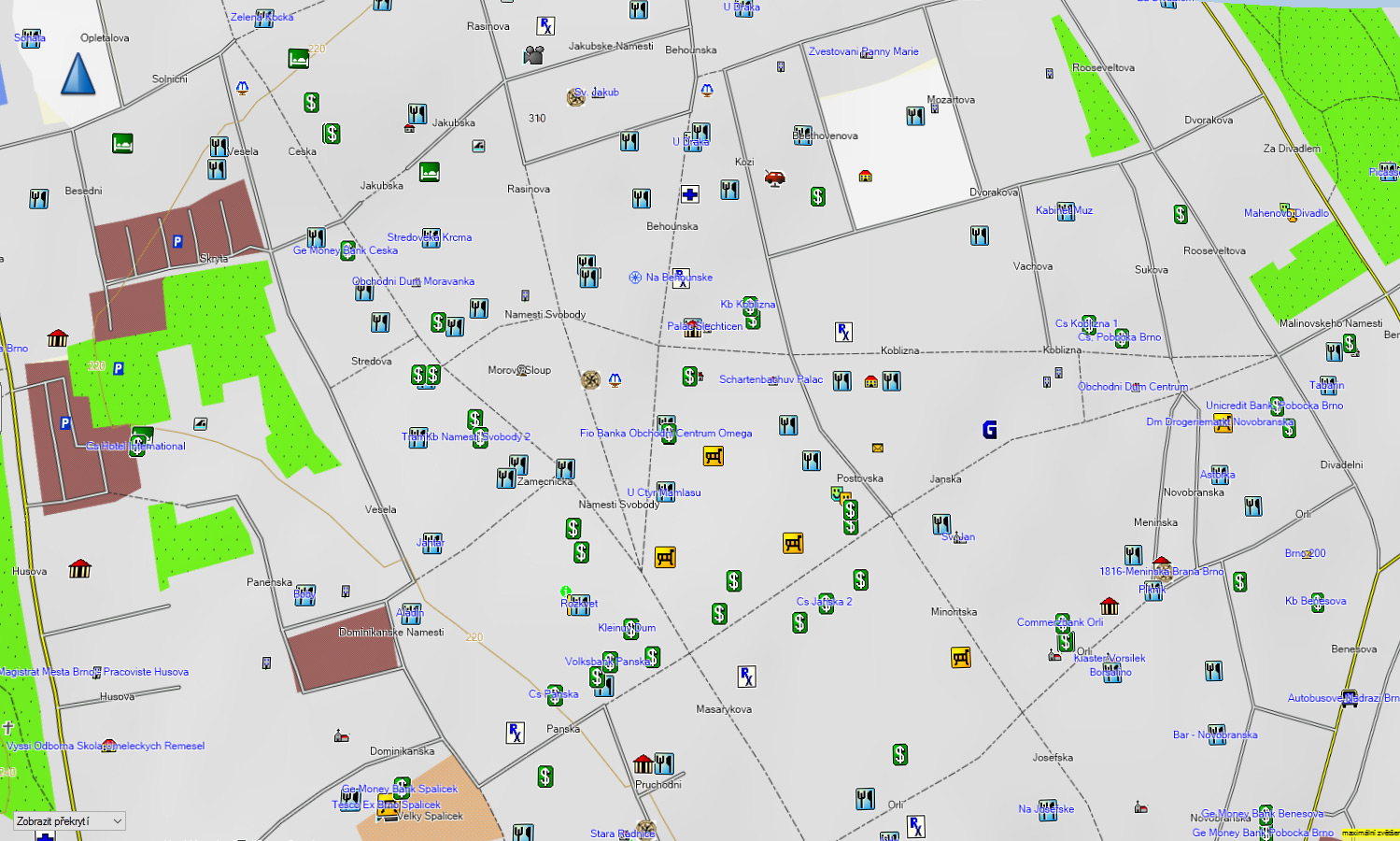 Topo Czech v3 Pro 2017Výrazné odlišení budouv a bloků, barevné odstíny kostelů a klášterů, jasně rozlišitelná náměstí, parkoviště i zelené plochy