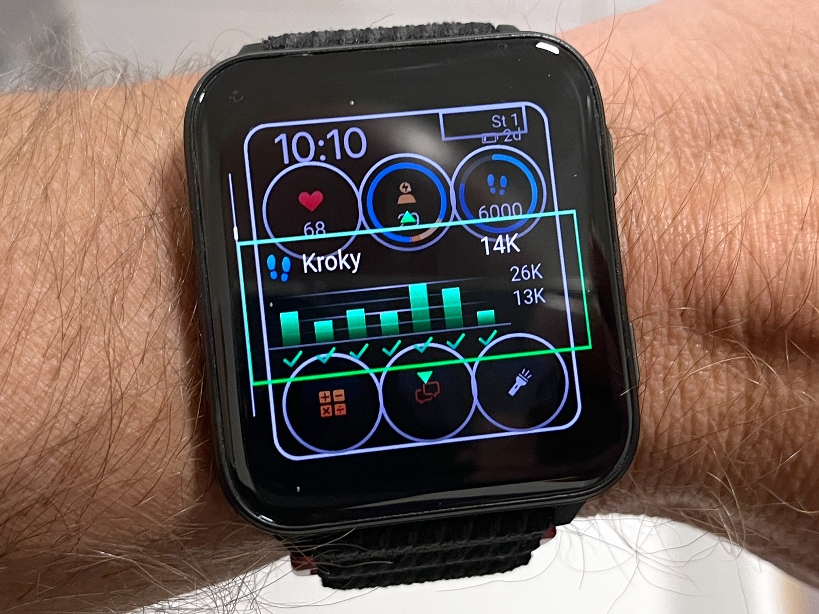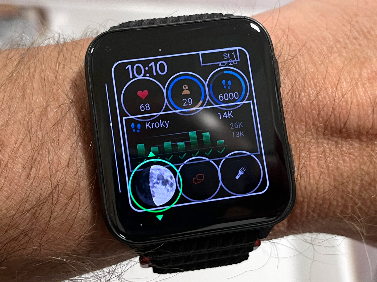 Částečně to nahrazuje zkratky, které Venu X1 kvůli absenci tlačítek nemá, resp. jsou zde tři a dvě jsou vyhrazené pro svítilnu a ovládací prvky (ale změnit jdou). Místo klasických datových polí můžete mít ikony spouštějící různé funkce, jako je Messenger, svítilna, přehrávač hudby, poslední aplikace, peněženka, ovládací prvky, kalkulačka, hlasové poznámky, časovač, úprava cifernílu atd.