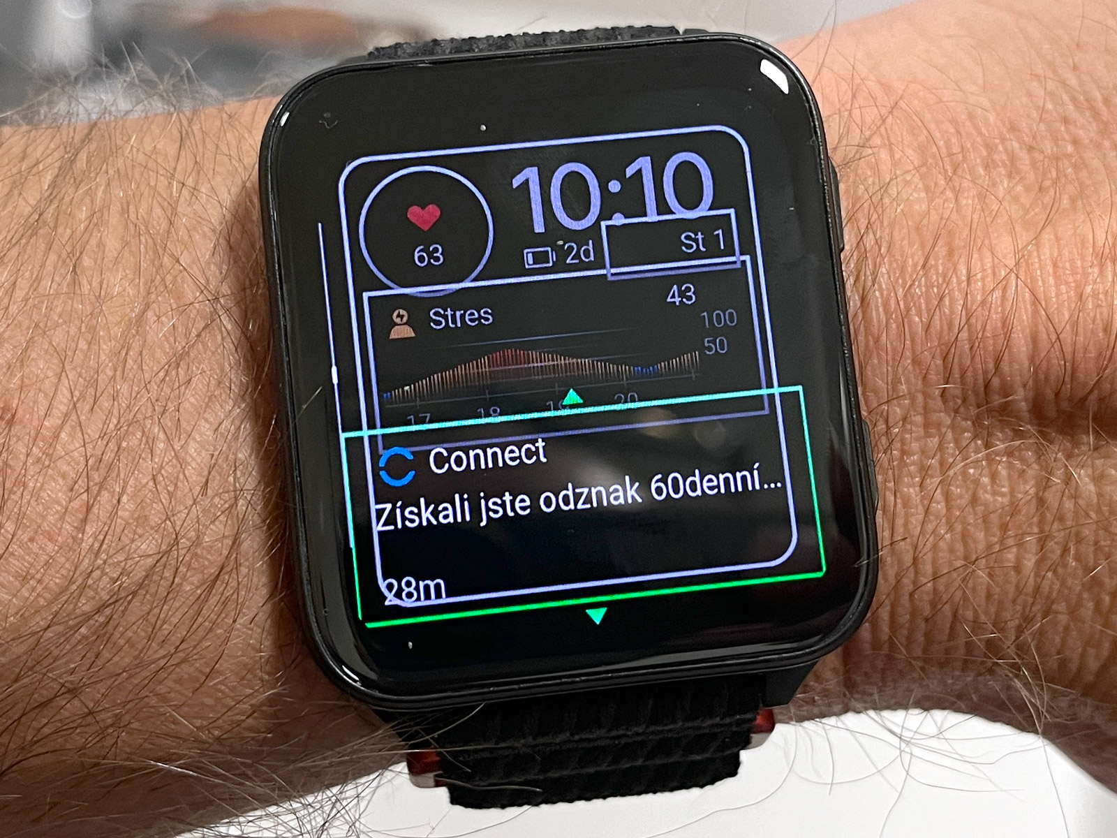 Přitom možností datových polí je celá řada, vlastně jsem tu našel úplně všechno, co jsem hledal. Konečně! Ale to není všechno. Každý z těchto ciferníků má přes hlavní část displeje obří pole pro jeden velký graf nebo grafiku. Může zde být tepovka, stres, Body Battery, kalorie, týdenní kroky, minuty inzezivní aktivity, výškoměr... Fantazii se meze nekladou.