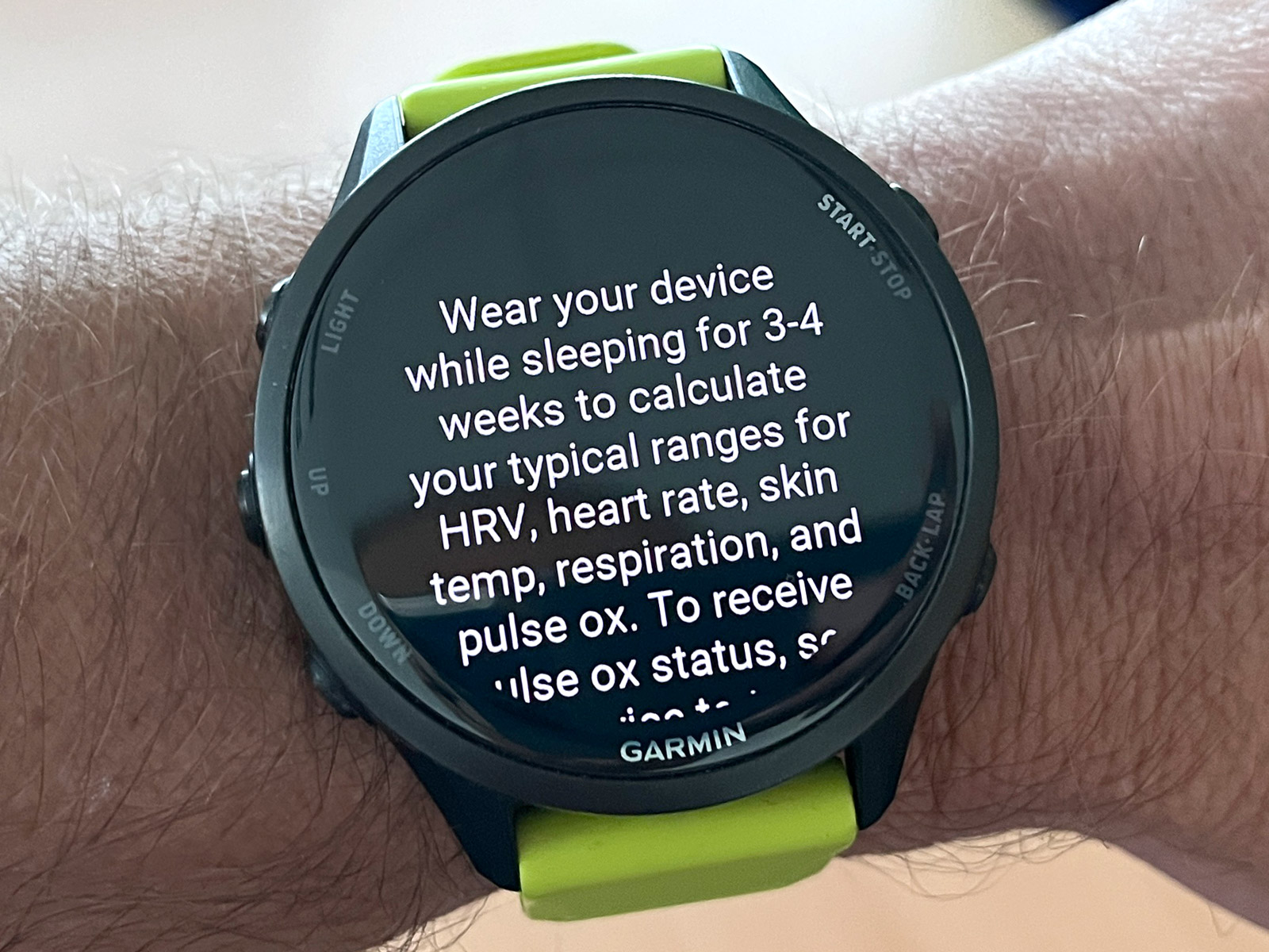 Zajímavé je, že hodinky po mně chtějí čekat několik týdnů, než se tato optima nastaví. Přitom měření všech těchto metrik má Connect k dispozici za posledních několik let. Faktem ale je, že ne každý má aktivní sledování SPO ve spánku, což je jednou z metrik. Zatím se na hodinkách ukazuje stav Calibrating plus hláška, že si mám zapnout PulseOX alespoň pro spánek (což mám).