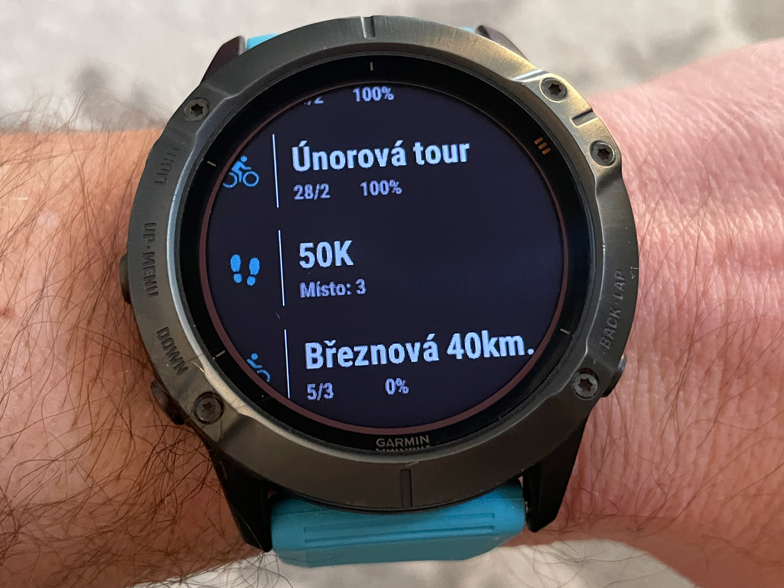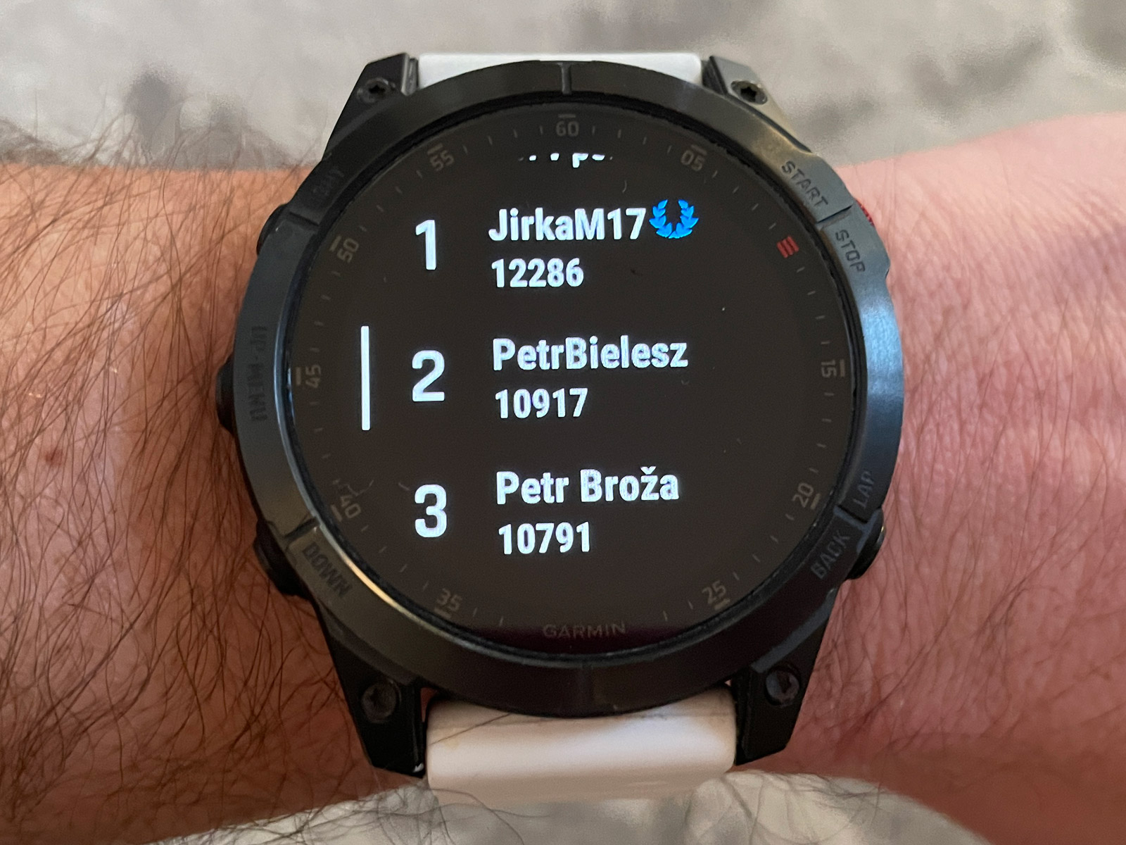 Již delší dobu se můžete v deníku Connect zapojit do Výzev: jde o Garminem stanovené cíle pro daný měsíc nebo delší časové období, zejména čtvrtletí. Za tuto dobu je třeba splnit nějaký úkol, například naběhat 50 km, ujít 300 tisíc kroků či na kole vystoupat pět tisíc metrů. A když tuto výzvu splníte, dostanete odznak a nějaké ty body. Garmin nabízí také „soutěživé“ výzvy – například kdo ujde nejvíce kroků za aktuální týden. Tam pak vidíte žebříčky připojených uživatelů.