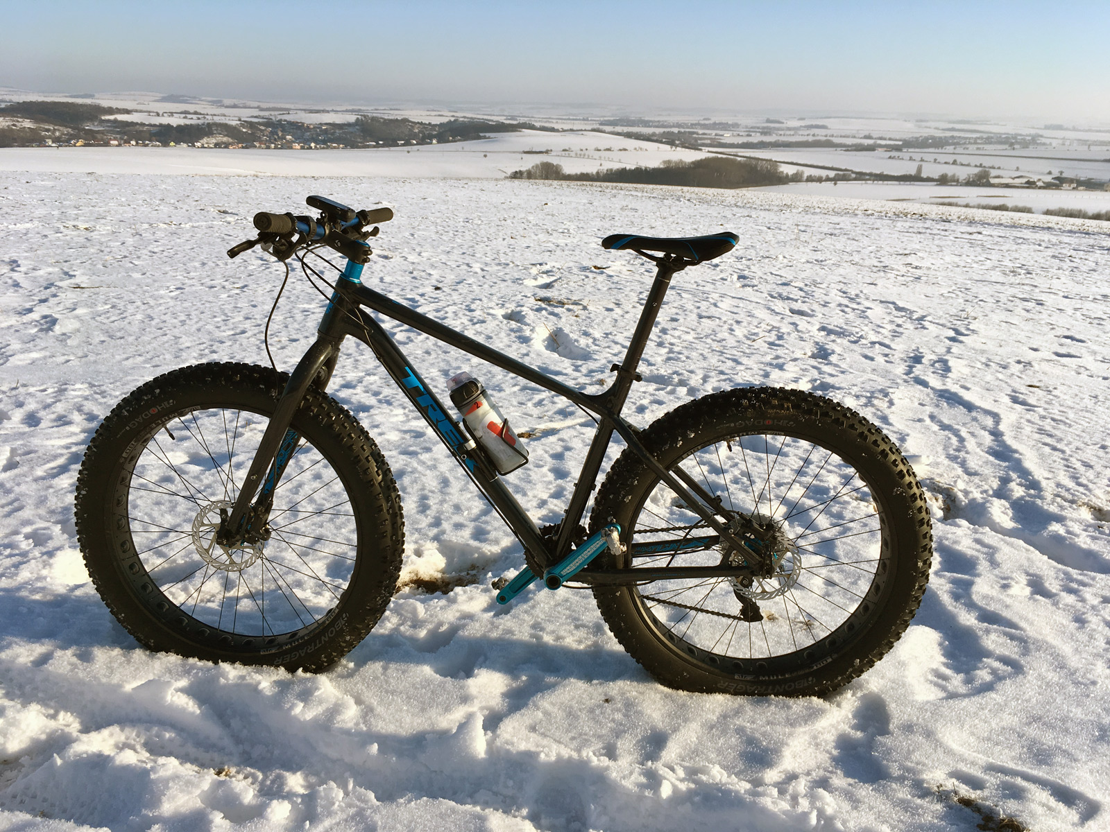S těmi tlustými čtyři palce širokými koly na kole Trek Farley 6 jsem se na přelomu ledna a února stal středem pozornosti všude, kam jsem vyrazil. Mnozí ještě nejsou zvyklí na ty obrovské „papuče“, které připomínají pneumatiky motorky. A když pak jedete po zamrzlé řece nebo přejíždíte vodní nádrž, po které se prohání bruslaři a běžkaři, koukají skoro všichni.