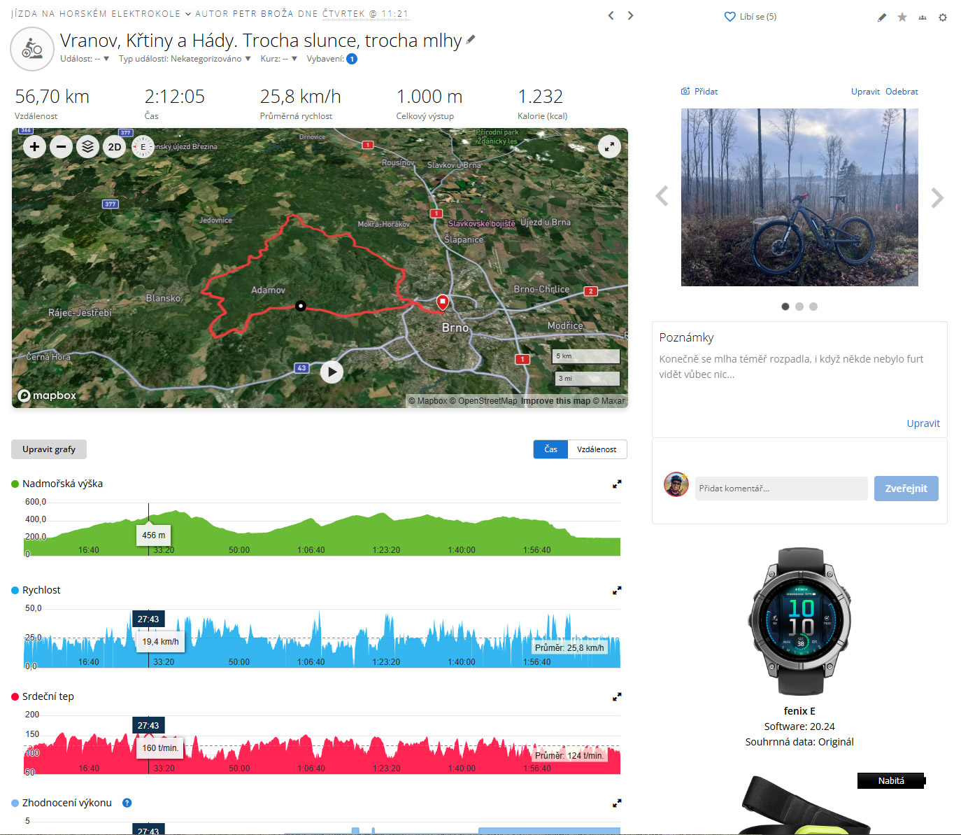 Hned poté, co jsem si hodinky nasadil na ruku, jsem poznal jednu zásadní nevýhodu: starý displej AMOLED s nižším jasem. Resp. poznal jsem to při první venkovní aktivitě. Skoro jsem zapomněl, jaké to je, když mám na řídítkách hodinky v režimu bludička se zobrazenou mapou. Faktem je, že v prosinci máme na jižní Moravě převážně inverzi, a tudíž si už skoro ani nepamatuju, jak vypadá sluneční svit.