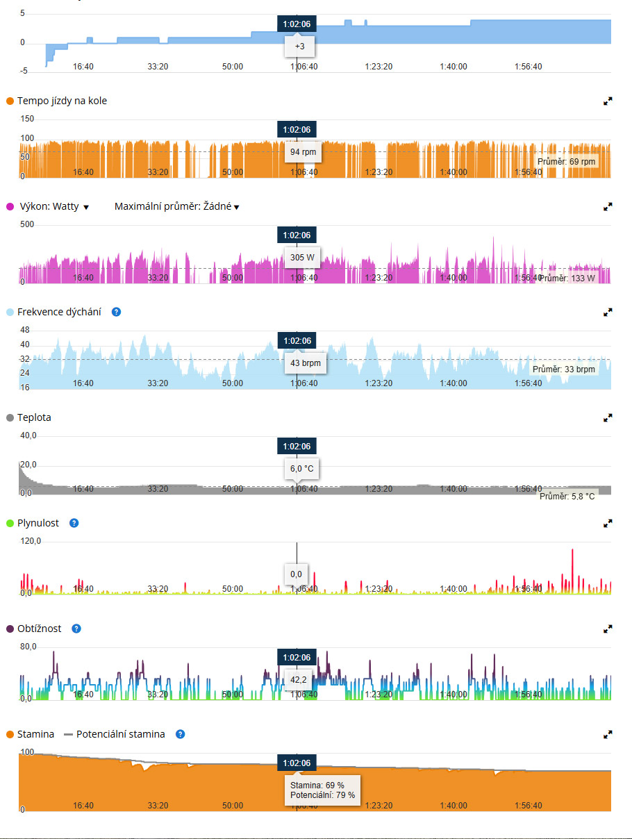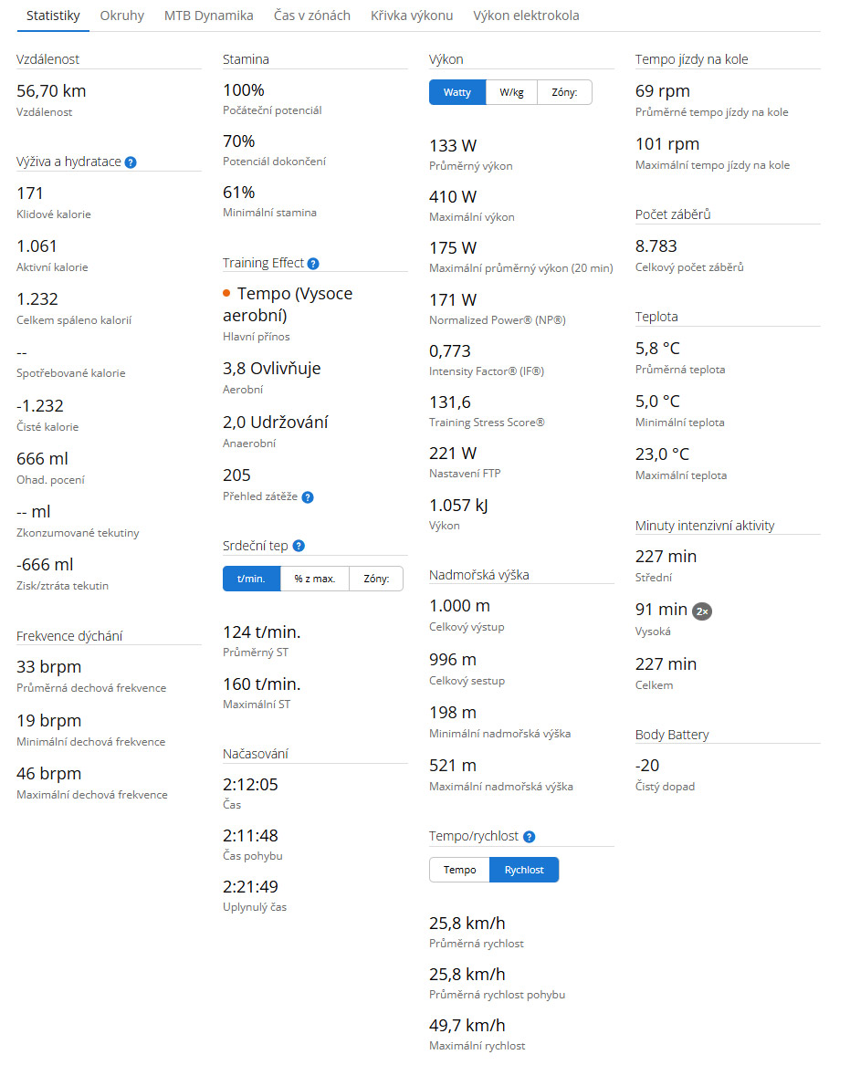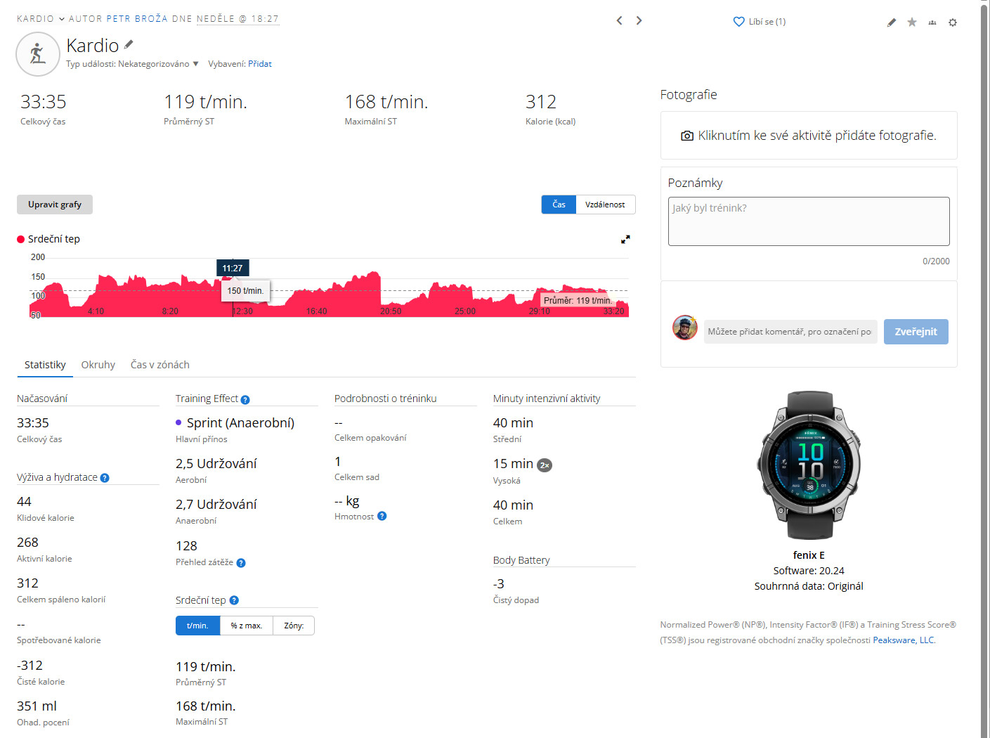 - Neděle - kardio 33 m (kolo jsem už měřil na Edge...)