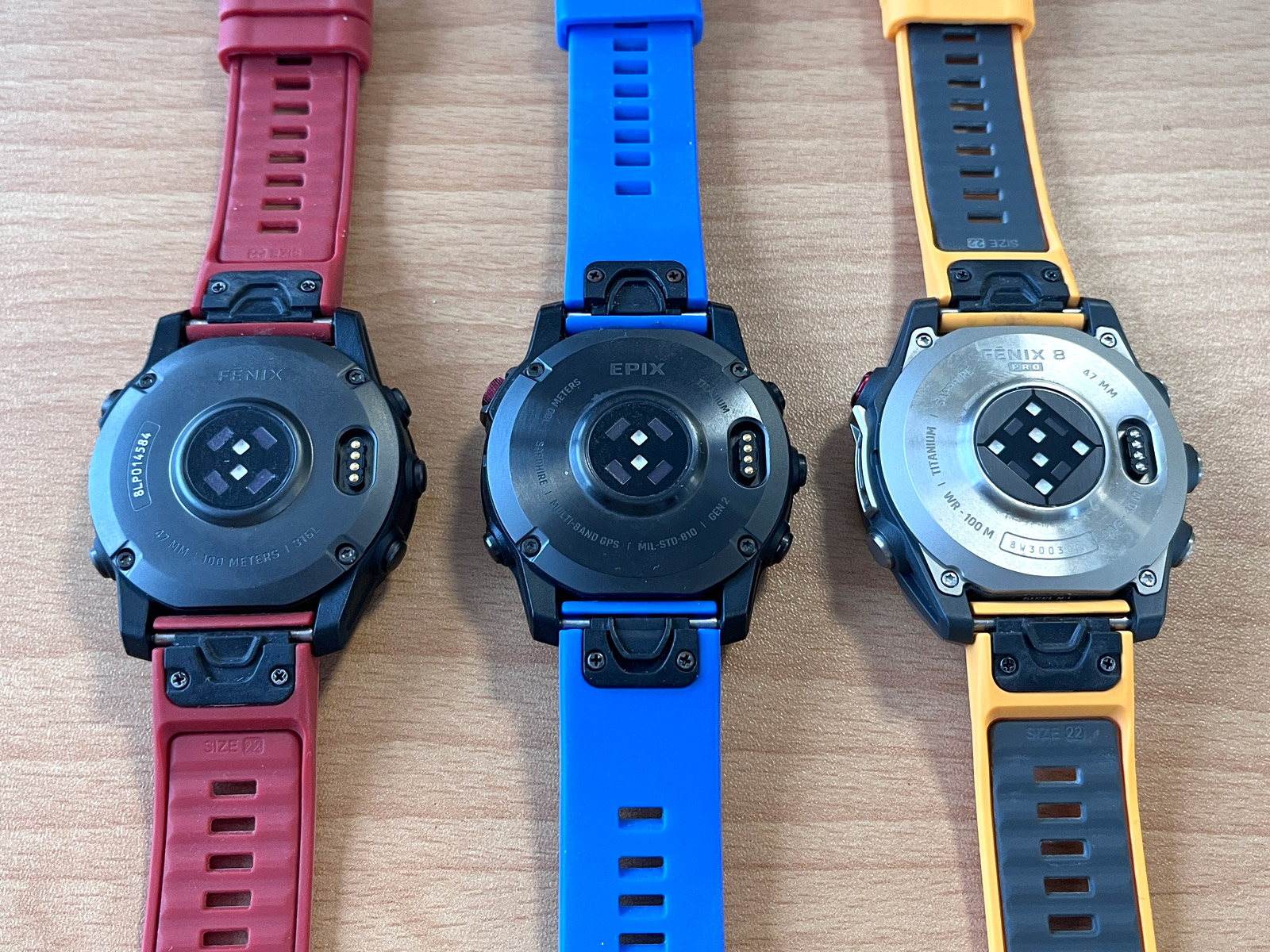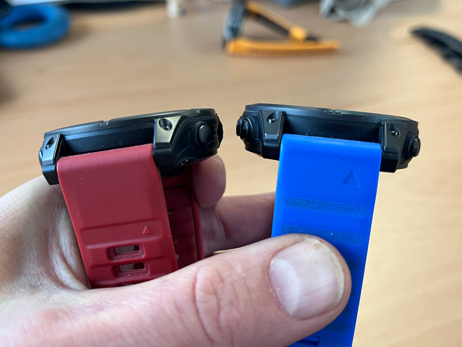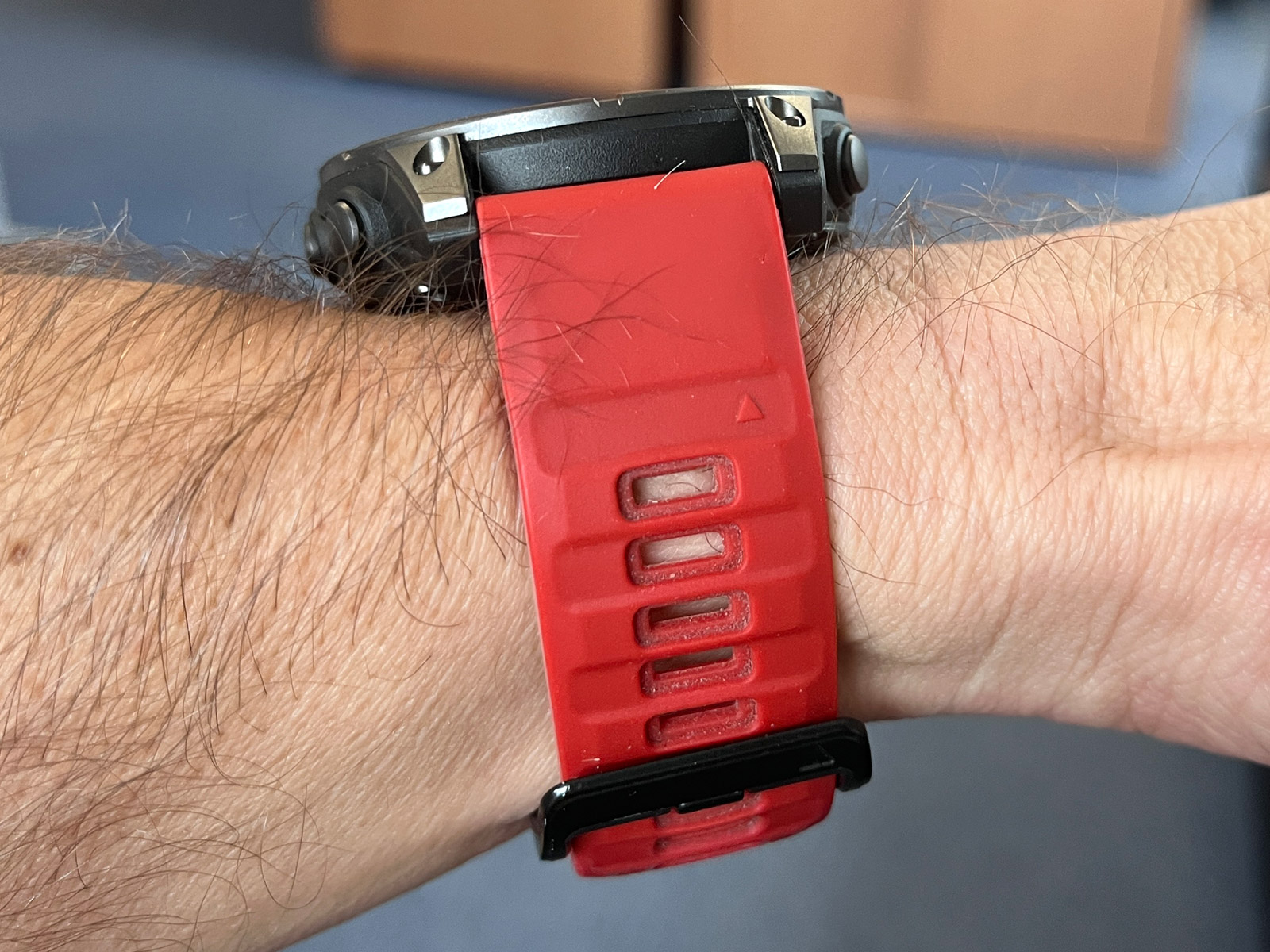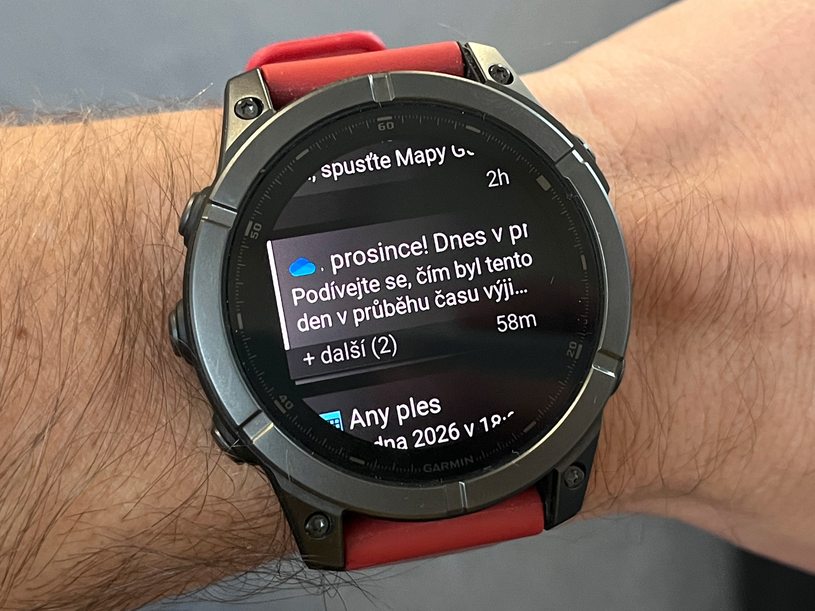 Každopádně hodinky na ruce jsou docela fajn, i když takové Forerunnery 970 váží výrazně méně a jsou nositelnější. Černý silikonový řemínek QuickFit 22 mm jsem vyměnil za tmavě červený, který jsem měl dříve na Fénixech 8 (ty měly červenou krytku barometru a dobře to k sobě sedělo), a je to docela fajn kombinace. Rozhodně se mi Éčka líbí více než Forerunnery, prostě jsou to Fénixy a ty vypadají dobře.